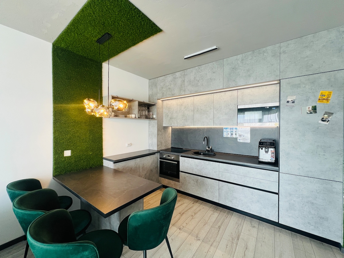 Daire, birçok restoran ve mağaza bulabileceğiniz Prima mağazalarının ve Lotus perakende parkının yakınında, yeni bir konut binasında bulunmaktadır. Dairenin içinde modern özel mobilyalardan havlulara, yatak çarşaflarına, şilteye, ev aletlerine ve mutfağın bulunduğu her şeye kadar her şey yepyeni. Lezzetli bir kahvenin veya bir fincan çayın tadını çıkarabilirsiniz. Merkezi yerden ısıtma ve klima ünitemiz var. 14:00 'dan sonra kendi kendine giriş Kapasite 3 kişiliktir Ücretsiz park yeri.