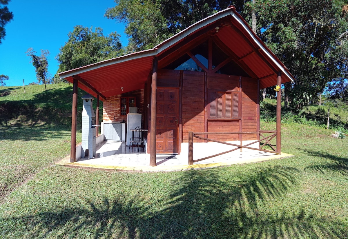 Doğayla çevrili Kaa Puã Çiftliği'nin içinde, dağların ve gün batımının harika bir manzarasını sunan dağ evi. Burada hamak alanımız ve meyve ve şifalı bitkilerden oluşan meyve bahçemiz gibi çeşitli açık hava seçeneklerinin tadını çıkarabilirsiniz. Dağ evi sade, rahat ve bakımlıdır, dinlendirici bir konaklama için gereken tüm konforu sunar. Balkonda, lezzetli bir açık hava barbeküsünün tadını çıkarmak için mükemmel olan taşınabilir bir barbekü bulabilirsiniz.