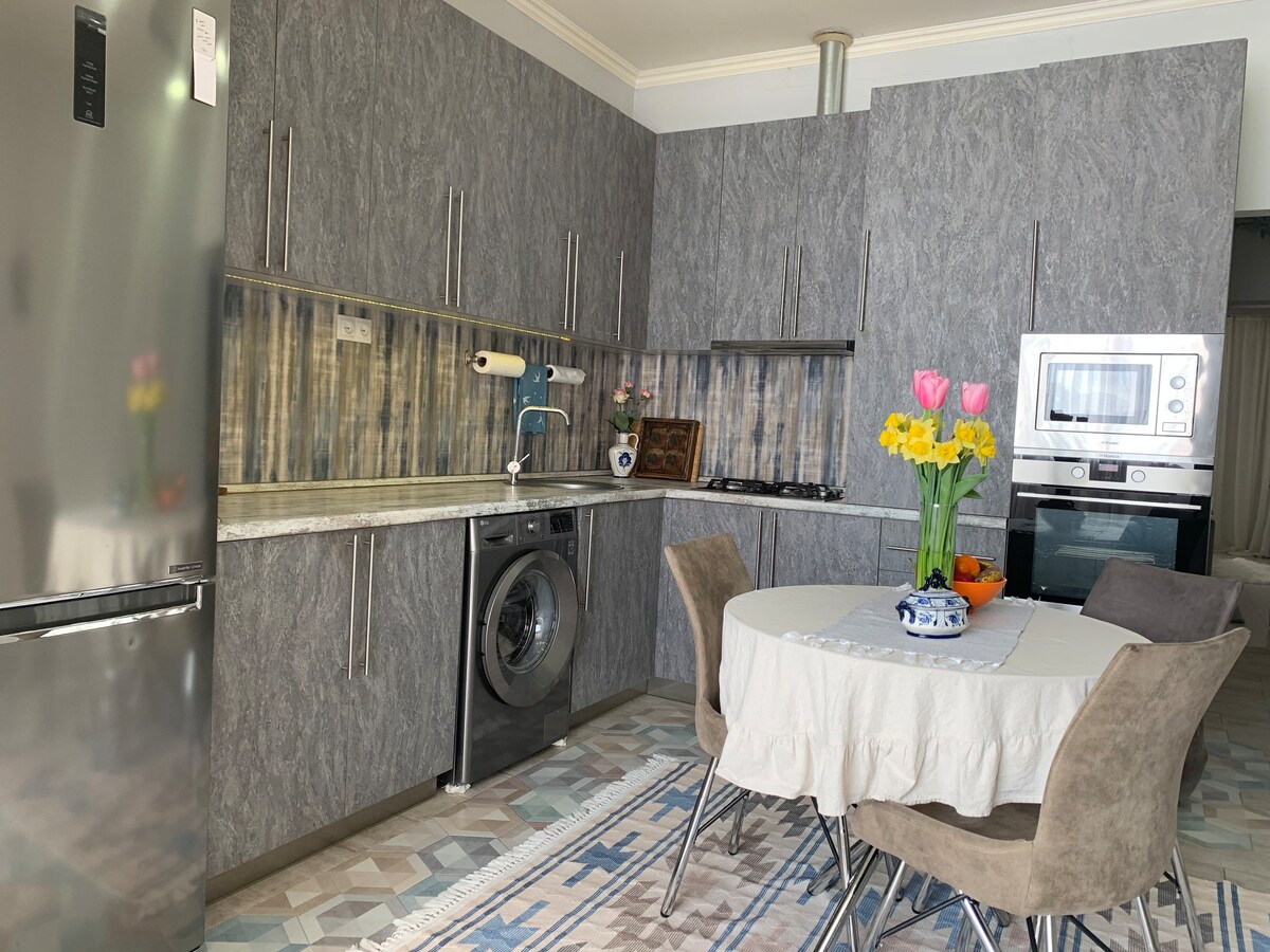 Erivan'daki bu huzurlu çatı katında gevşeyin Yepyeni bir binadaki huzurlu çatı katımıza adım atın. Güneş ışığı, özel bir balkonun güzel manzaraları çerçevelediği açık yaşam alanını dolduruyor. Modern mutfakta yemek hazırlayın, ardından süperking yatakta dinlenin veya akıllı TV'de bir şov izleyin. Konaklama biriminde çamaşır makinesi, ücretsiz park yeri, yüksek hızlı kablosuz internet bağlantısı ve asansöre erişim konaklamanızı zahmetsiz hâle getirir (not: çatı katına çıkan merdiven). Yalnız seyahat edenler, çiftler veya küçük aileler için idealdir.