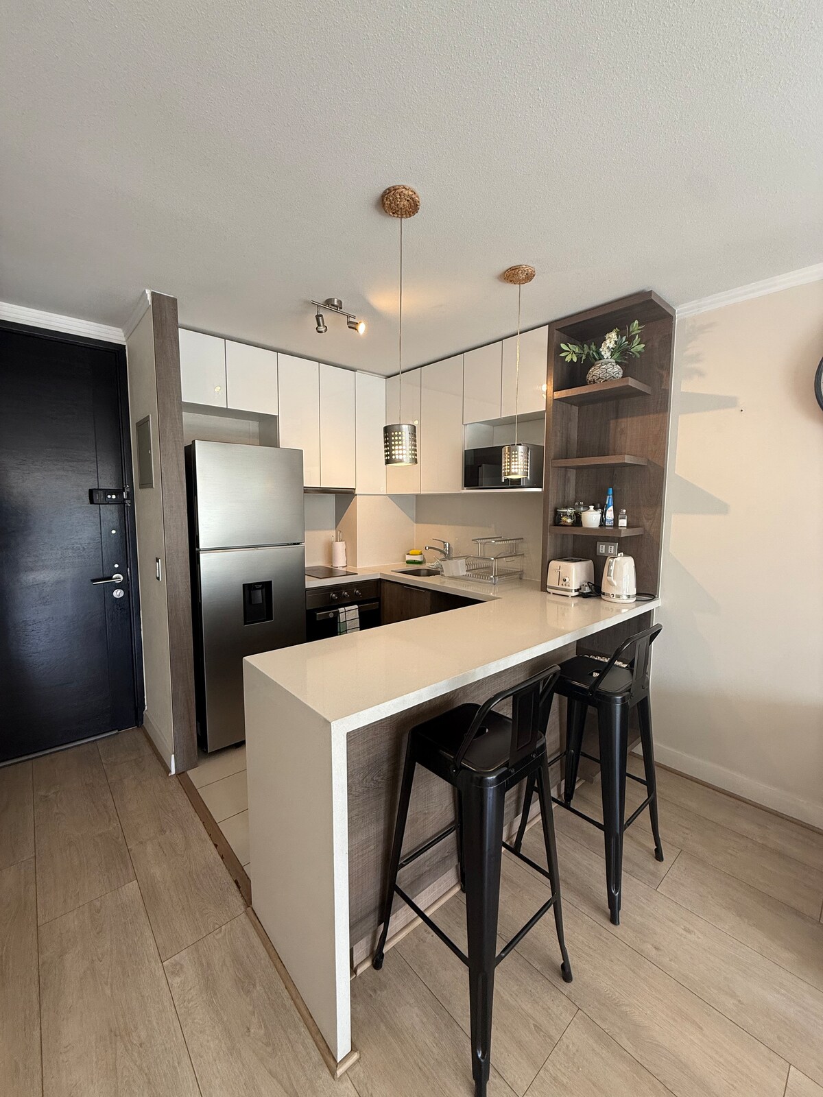 Canlı Las Condes'te vahanızı keşfedin! Bu rahat 1 yatak odalı daire, 3 misafire kadar konaklama sağlar ve tarz ile konforun bir karışımını sunar. Ferah yaşam alanında dinlenin veya kahve makinesi ve bulaşık makinesi bulunan tam donanımlı mutfakta lezzetli yemekler hazırlayın. Rahatlatıcı bir küvette enerjinizi toplayın, asansör ve kapı görevlisinin rahatlığından yararlanın. Yerel turistik yerlere sadece birkaç adım uzaklıkta, yakınlarda sonsuz maceralar bulabilirsiniz. Konfor ve rahatlığın mükemmel bir karışımını deneyimlemek için hemen rezervasyon yapın