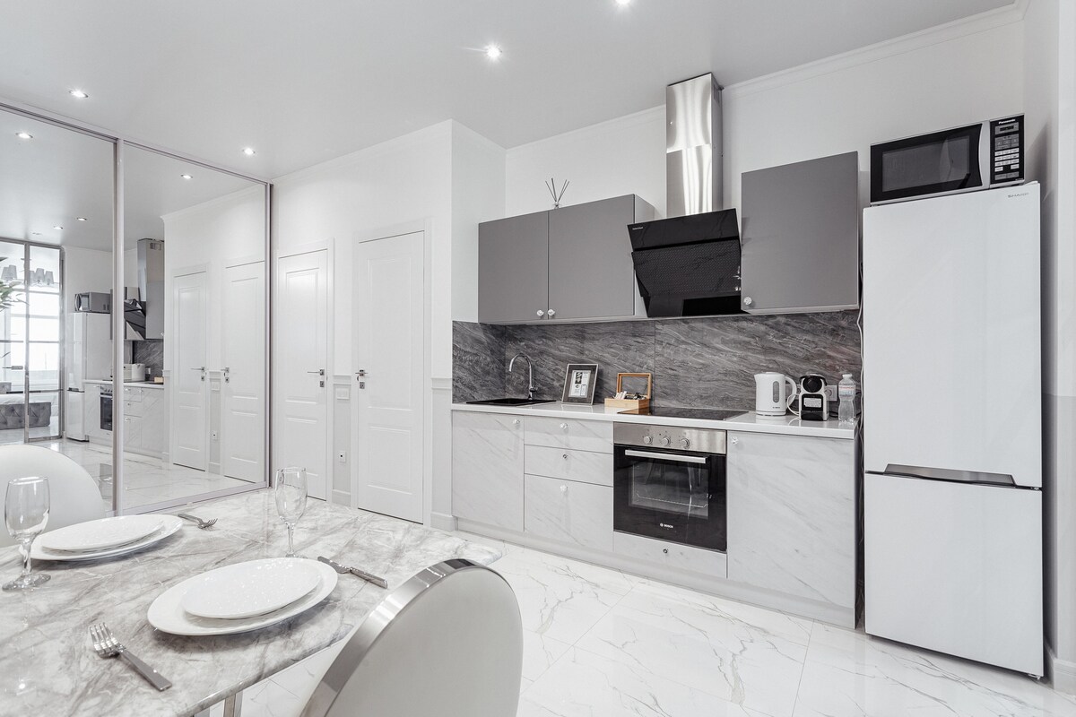 Deniz kenarında yürüyüşler, restoranlar, kulüpler ve alışveriş merkezleri ile Odesa'nın en canlı bölgesi olan Arcadia Plajı'na sadece birkaç adım uzaklıktadır. Bu aydınlık ve ferah dairede, rahat bir yatak odası, tam donanımlı bir mutfak ve sabah kahveniz veya akşam şarabınız için özel bir balkon bulunmaktadır. Bina, 7 gün 24 saat güvenlik ve video gözetimi ile kapalıdır, ayrıca aileler için modern bir oyun alanı vardır. Hem konfor hem de tarz arayan çiftler, arkadaşlar veya aileler için mükemmeldir.