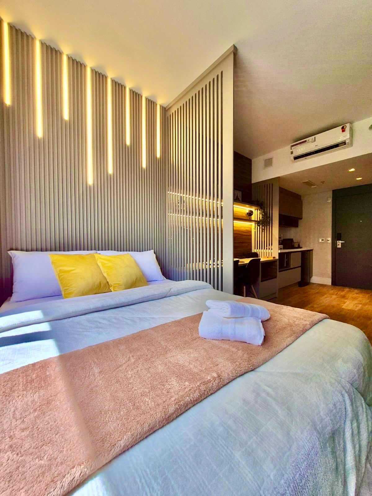 Rebouças'ta modern stüdyo daire, Mercado Municipal, Shopping Estação'ya 5 dakika, kafeler ve barlara yakın. Kolay erişim: Otobüs durağına 10 dakika, havalimanına 25 dakika. Klima + ısıtma; gazlı su duşu; ortak çalışma; 400 Mb Wi‑Fi + masa; otel tarzı çarşaflı queen boy yatak + karartma perdeleri; donanımlı mutfak; akıllı TV yayını; 24 saat kendi kendine giriş; binada çamaşırhane ve spor salonu.