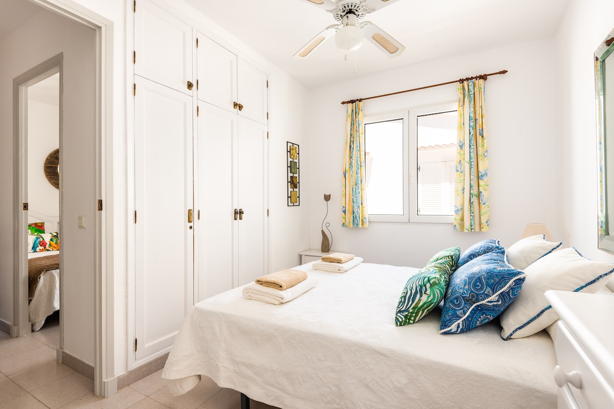 Fantástico apartamento de 90m2 más 18m2 de terraza donde poder disfrutar de unas increíbles vistas del mar. Ideal para 5 personas ubicado en la urbanización de Coves Noves, Es Mercadal en un complejo residencial con piscina y a tan solo 250 metros de Playa Arenal d'en Castell. Dispone de tres habitaciones, una con dos camas individuales otra con cama individual y otra habitación con cama de matrimonio y baño en suite. Cocina, salón-comedor con salida a la terraza privada. Zona comunitaria bonita