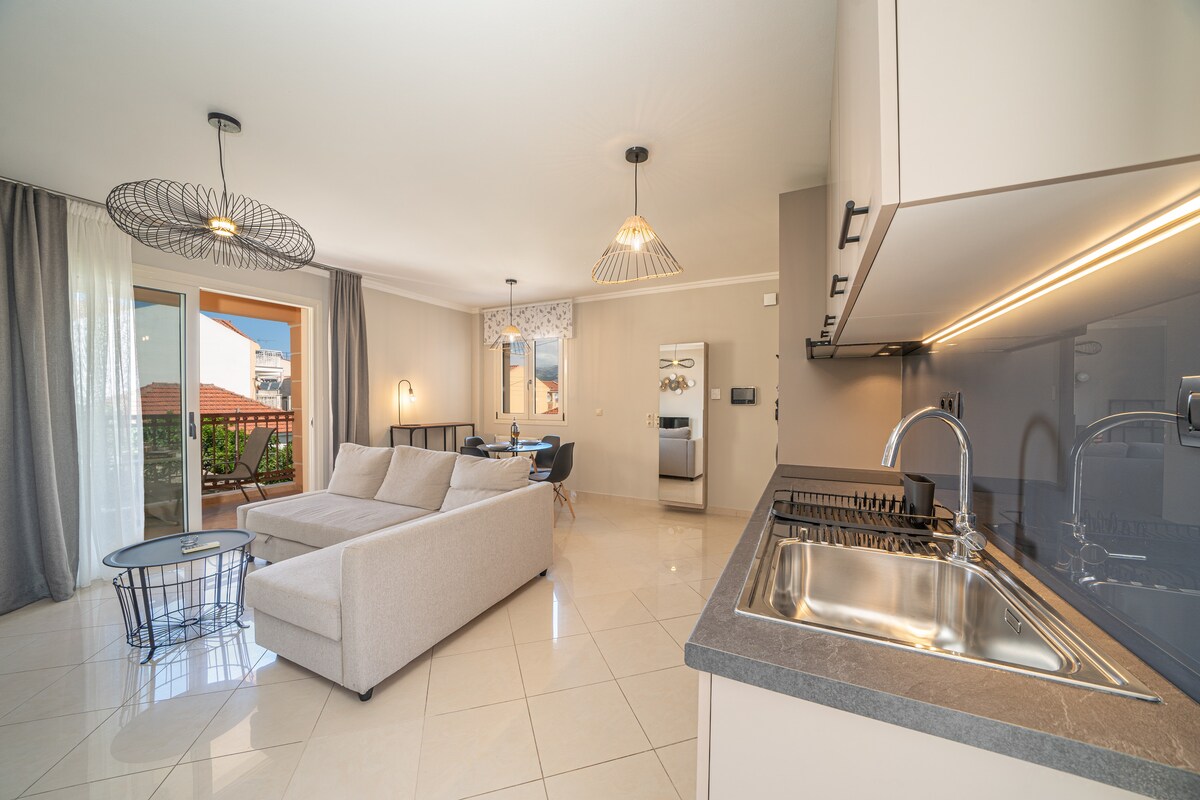 Güzel Argostoli kasabasının merkezinde aydınlık ve güneşli bir daire. Şehrin en merkezi caddelerinden birinde, ziyaretçilerin dinlenebileceği ve geleneksel yemeklerin, serin kokteyllerin ve lezzetli dondurma veya tatlıların tadını çıkarabileceği merkez meydandan birkaç metre uzaklıktadır. Ticari cadde çok yakındır (yaklaşık 100 m) ve dairenin hemen yanında bir süpermarket ve otobüs durağı vardır.