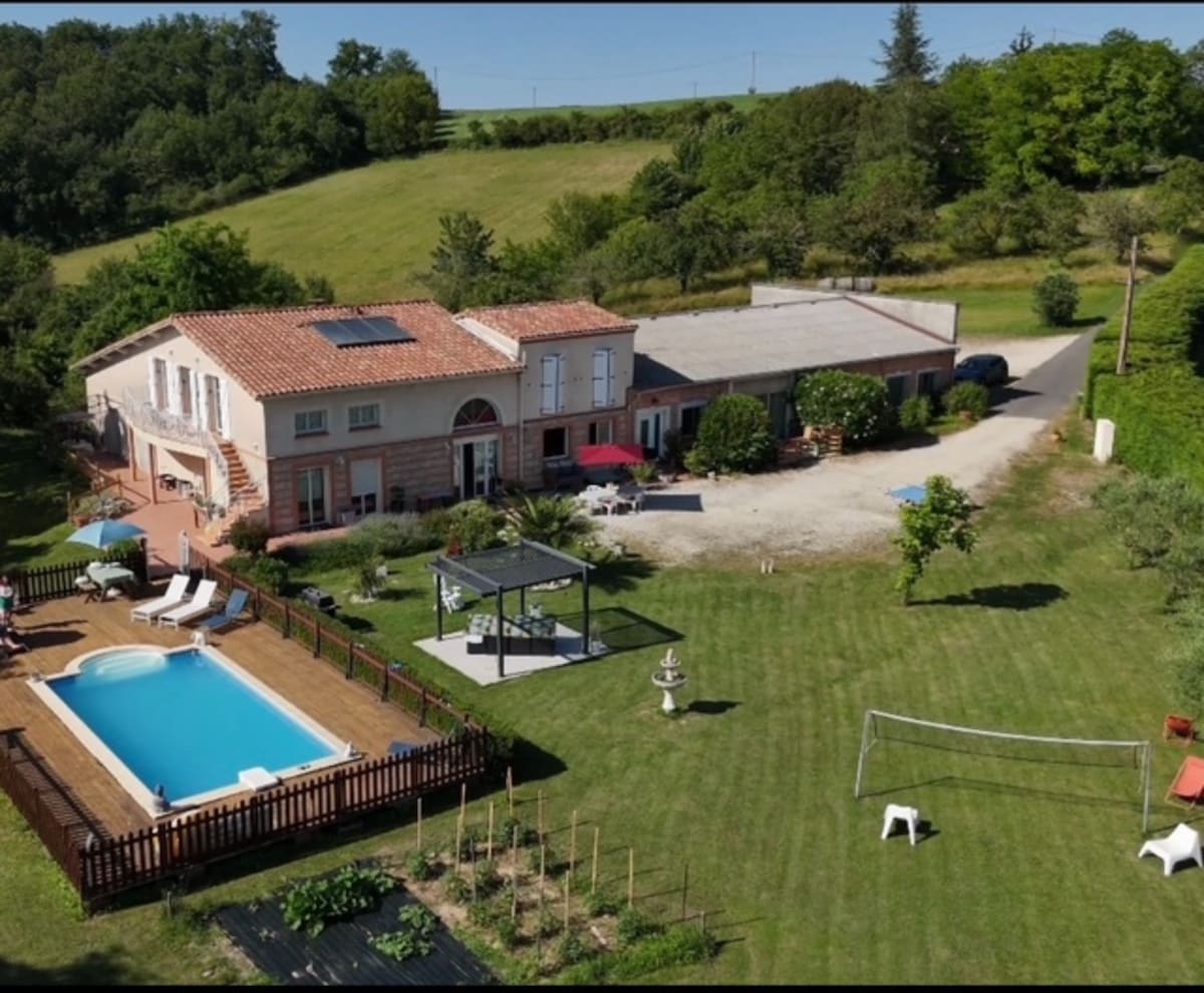 À 35 mn de Toulouse, suite pour 6 personnes. En pleine nature, piscine et jardin paysagé (4000m2), salon de jardin couvert (plancha + réfrigérateur), bassin d'agrément (70 m2), boulodrome. Belle vue dominante. Brunch généreux. Pas d'autres vacanciers que vous, piscine et jardin exclusivement réservés à votre usage. FIN 2025 : DÉPART TARDIF (17 h) si SÉJOUR DE 2 NUITS ou + B&B / brunch inclus : suite de 88 m2 avec 2 chambres, 1 grand salon (climatisé, Canal +), 1 petit salon / chambre, 1 sdb.