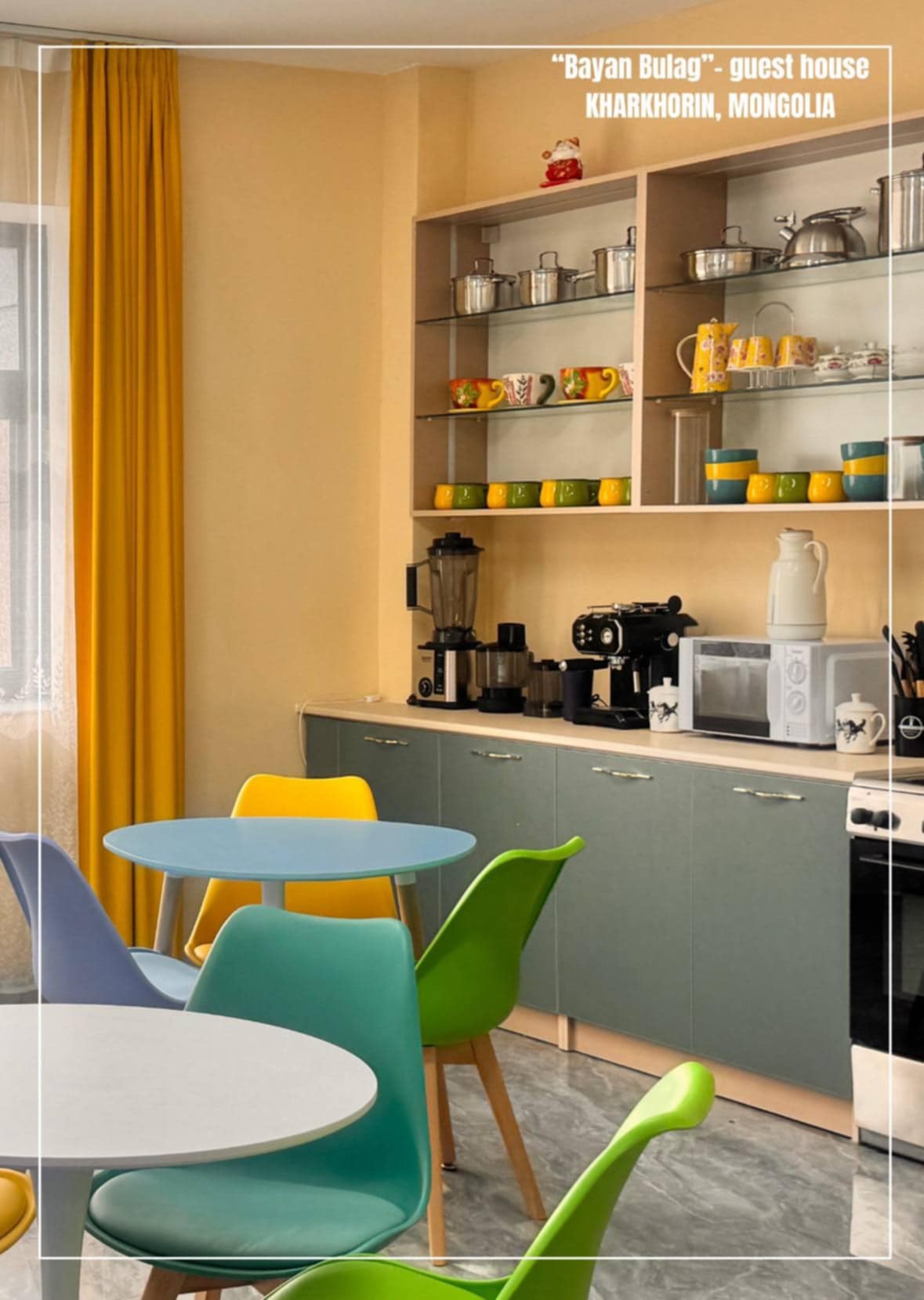 Kendinizi temiz kır havasına bırakın ve Moğol bozkırının rüzgarını hissedin. Burada, taşra yaşamının sırlarının kilidini açabilirsiniz. Moğol tarihi ve kültürüyle derinden bağlantılı bir yer olan Karakurum sizi ağırlıyor. Çok kültürlü bir sanatçı ailesiyiz ve evimiz, Moğol İmparatorluğu'nun eski başkenti gibi, farklı kültürler için canlı bir buluşma noktasıdır.