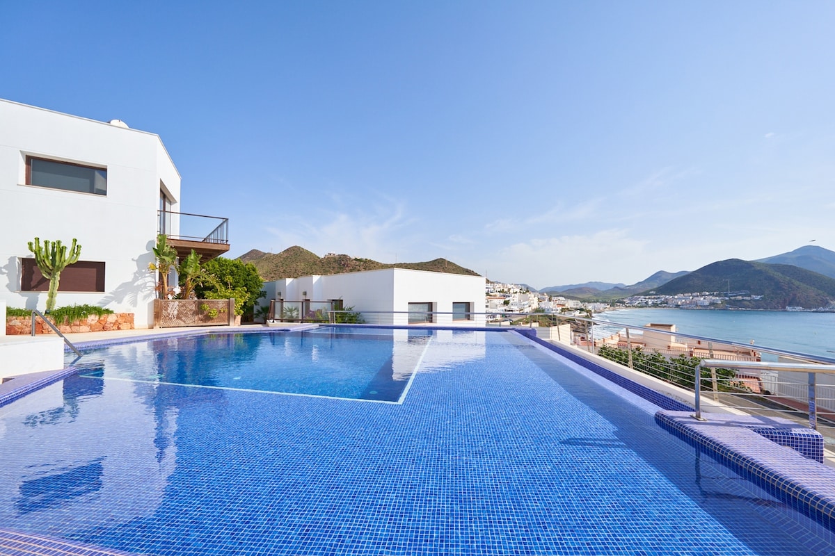 Cabo de Gata Doğal Parkı'ndaki en iyi turistik konaklama yerlerinden biri olan San José'deki Vista Calilla Çatı Katı. En kaliteli kaplamalara sahip modern daire, denize bakan harika teras, deniz manzaralı muhteşem sonsuzluk havuzu ve en iyi konum, şehir merkezine 10 dakika yürüme mesafesinde ve en iyi restoranların yanında. La Calilla Plajı'na 100 metre ve Genoveses Plajı'na 20 dakika yürüme mesafesinde, harika bir tatil geçirmek için eşsiz bir yer.