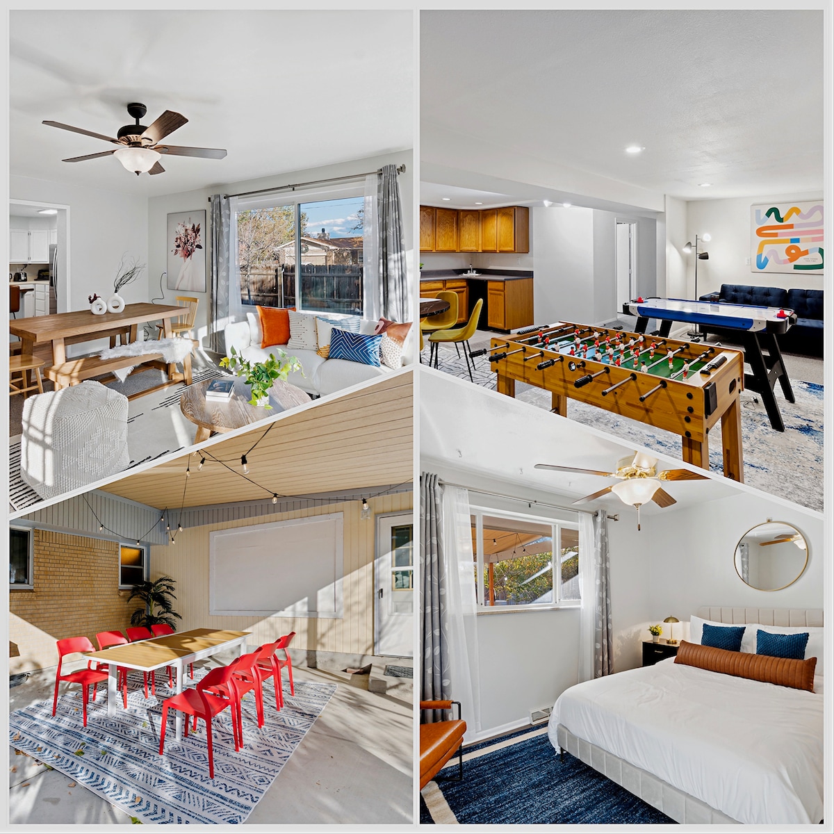 Welcome to the Arvada Arcade! New Ownership and Amazing New Design Upgrades and Features Including: new fire pit, backyard design & all new furniture. This home was built for your group to be right in the middle of Olde Town Arvada with games to keep you busy for weeks! With its vaulted ceilings and open lower half, the home was made to entertain. Perfectly located near grocery stores, shopping and local restaurants. Our home comfortably sleeps 14 guests with an entertainment room to match!