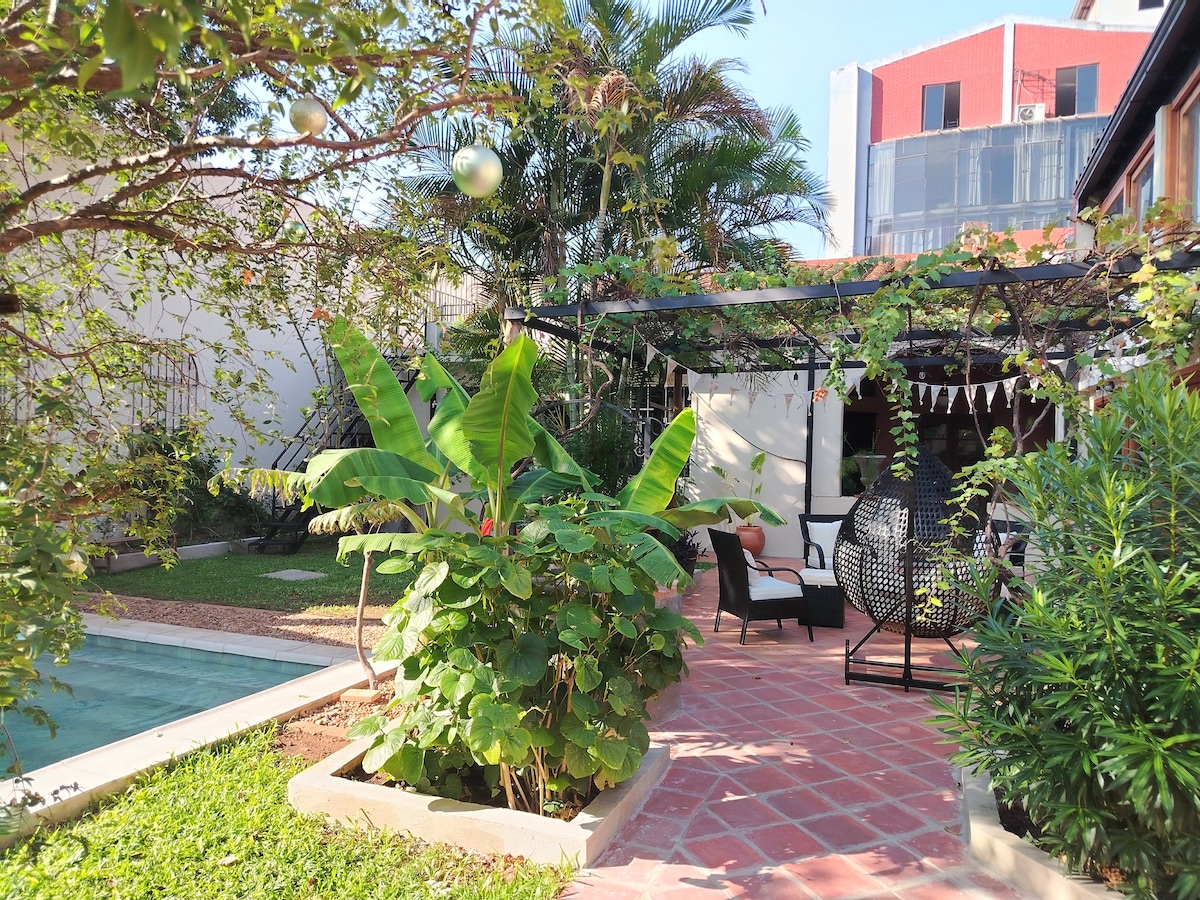 Asunción'un en iyi dairelerinin konumu ve lüksü, çok sakin bir yerleşim bölgesinde ve ana mağazalara yakın, barbekü olan güzel bir özel bahçe avantajıyla. Dijital göçebeler veya serbest çalışanlar hoş karşılanır. Ev, iyi bir internet bağlantısı ve çalışmak için ergonomik bir sandalye ile sessiz bir semtte bulunmaktadır Aynı mülkte 2 ev daha var, büyük bir grup iseniz bize danışın: Amilu 02 http://airbnb.com/h/amilu02 Amilu 04 http://airbnb.com/h/amilu04
