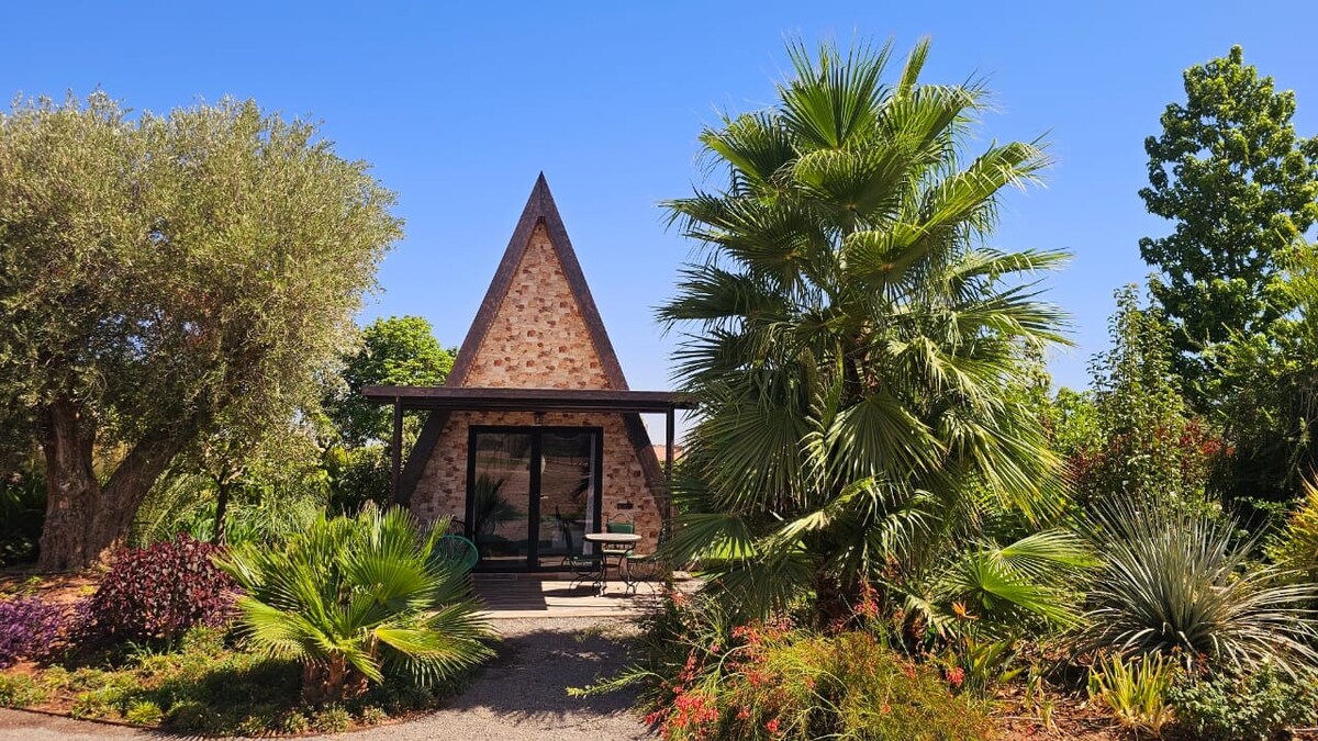 🌿 Chalet A-Frame d’Exception – Vue Atlas À seulement 20 min du centre, découvrez un chalet A-frame unique au cœur de la campagne marocaine, offrant une vue imprenable , il allie charme authentique et confort moderne. 🛏️ Lit king-size + lit simple 📺 TV, Netflix 🌐 Fibre haut débit 🌞 Terrasse privée 🏊 Piscine • 🌿 Jardin luxuriant 🍽️ Restaurant sur place • 🔥 Barbecue 🐑 Animaux & ferme pédagogique 🧸 Jeux enfants • ⚽ Foot • 🎯 Pétanque Un havre de paix pour une escapade nature inoubliable.