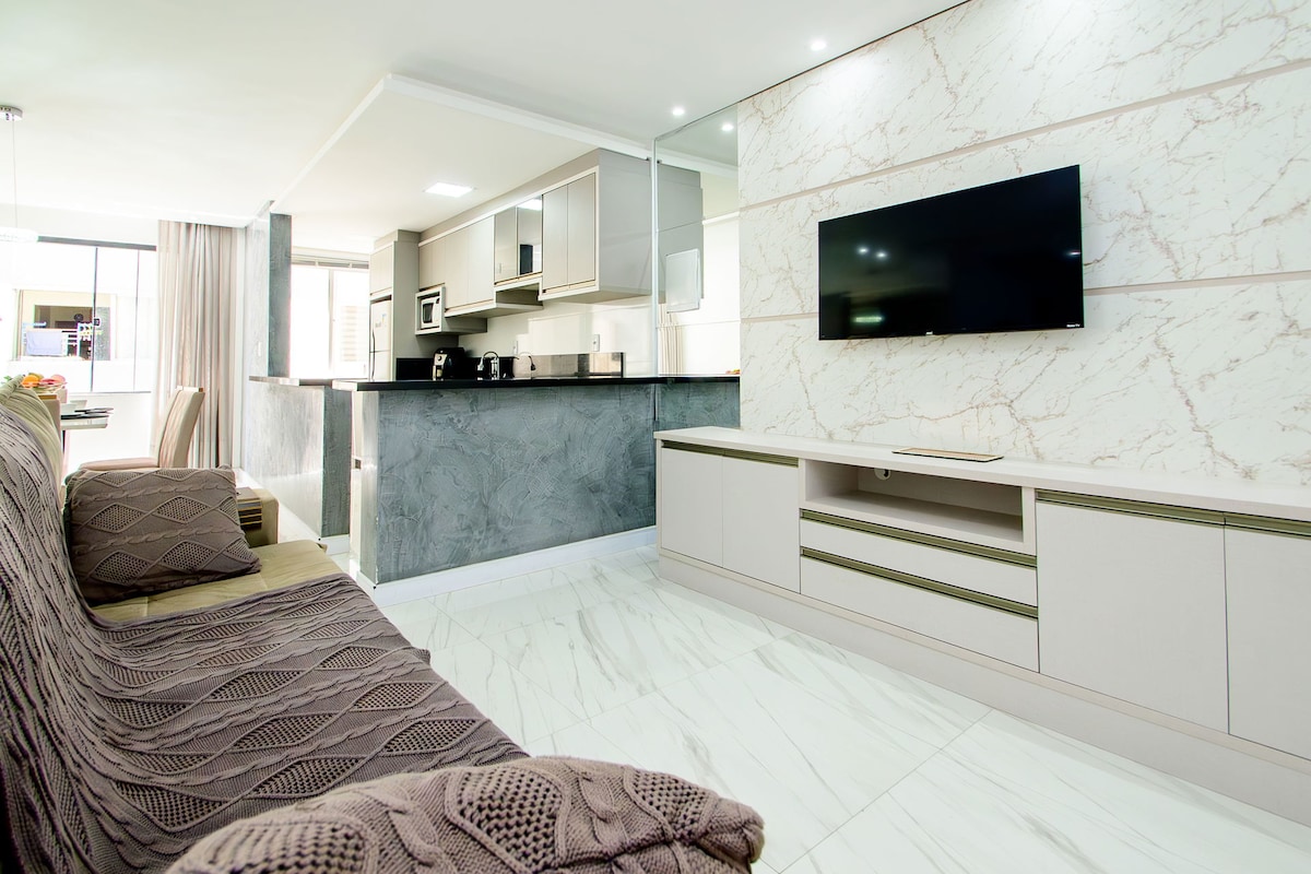 Bu şık yerde tüm aileniz ve arkadaşlarınızla eğlenin. En iyi konforunuz ve inanılmaz günleriniz için mimari ve aydınlatma projesi ile özenle hazırlanmış daire. Alan, ister tatil ister dinlenme ister iş için olsun, kendinizi evinizde hissetmeniz için konfor ve mükemmel bir konaklama için gerekli tüm öğeleri sunmak üzere tasarlanmış ve oluşturulmuştur. Şehrin en popüler ve hareketli bölgelerinden biri olan ve "Brezilya Dubai'si" olarak da bilinen Barra Sul'da bulunmaktadır. .