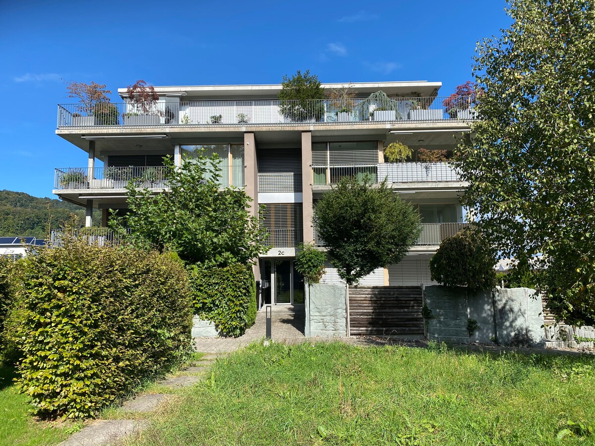 Birinci katta özel girişli ve özel banyolu (duş/WC) modern daire. Nespresso makinesi, su ısıtıcısı, mikrodalga fırın, buzdolabı (kahve ve çay dahildir). HD Austria ve Netflix bulunan TV. Çok merkezi konum: Tren istasyonuna 200 m, şehir merkezine 500 m, AmBach kültür mekanına 400 m – Ren Vadisi'nin göbeğinde. Sessiz ve yalnız seyahat edenler ve iş misafirleri için ideal. Girişin hemen önünde ücretsiz otopark (kapalı değil). Yatak: 1,20 × 2,00 m.