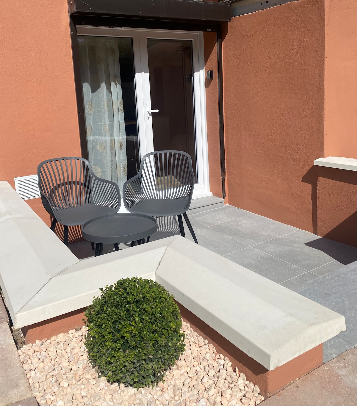 Fransa'nın en güzel köyü seçilen Kaysersberg'deki müstakil evde tamamen yenilenmiş daire. Tam donanımlı mutfak (nespresso makinesi) köşe deri koltuklu meridianlı oturma odası, 1 yatak odası (yatak: genişlik 160). Duşakabinli ve tuvaletli geniş banyo. Çok sessiz. Özel giriş, evin önünde ücretsiz otopark. Bahçe mobilyaları ve barbekü ile açık alan, çitle çevrili. Çarşaf , havlu, tuvalet kağıdı, sabun ve duş jeli verilir.