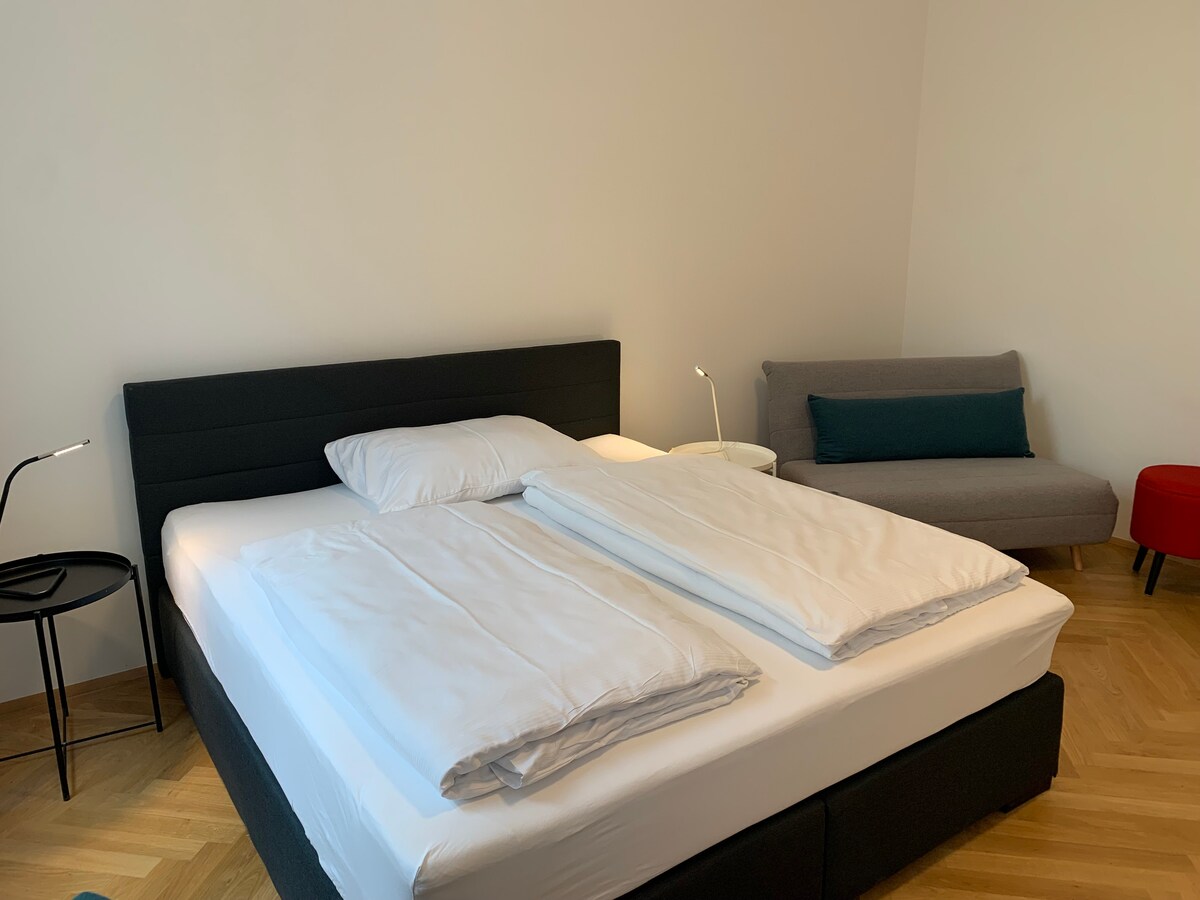 Bu güzel daire, Botanik Bahçesi ve Belvedere Sarayı'nın hemen yanında, merkezi bir konumdadır. Toplu taşıma araçlarıyla (tramvay, S-Bahn ve otobüs) şehir merkezine 5 dakikada, Viyana Merkez İstasyonu'na 5 dakikada ve aktarmasız olarak Viyana Havalimanı'na 18 dakikada ulaşabilirsiniz. 52 m2'lik bu büyüleyici dairede tam donanımlı bir mutfak, geniş bir çift kişilik yatak, bir oturma alanı ve bir çift kişilik çekyat bulunmaktadır. Seni görmek için sabırsızlanıyoruz!