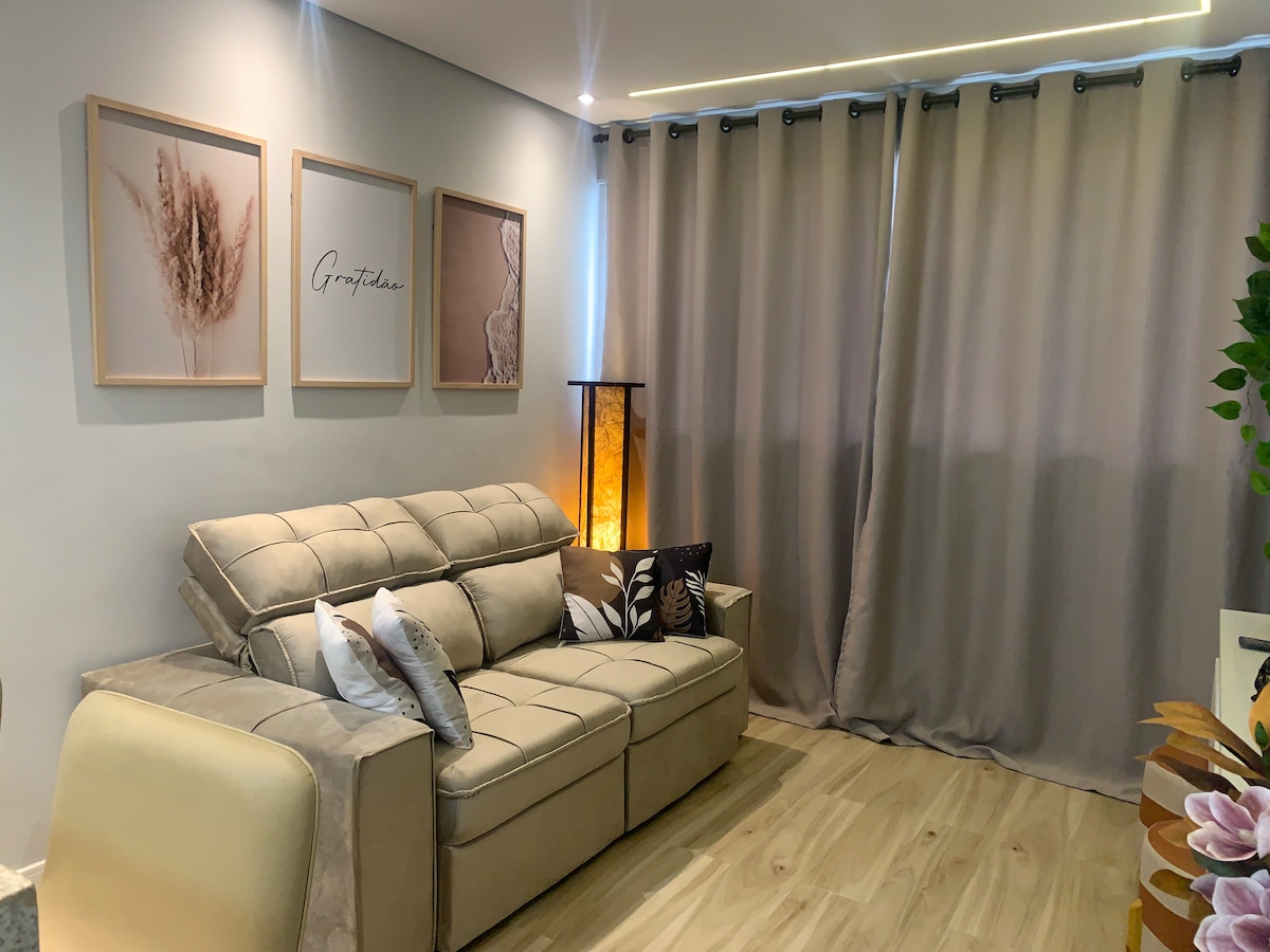Boqueirão Plajı'na sadece bir blok mesafedeki Residencial Unitá Homestay'in 2. katında endüstriyel dekorasyonlu bu modern dairede konforun ve pratikliğin tadını çıkarın. Gurme balkon, donanımlı mutfak, klima, kablosuz internet bağlantısı ve park yeri ile 4 misafire kadar ideal. Deniz kenarında dinlenmek veya çalışmak için mükemmel! Gözlem: Pazartesi günleri kapalı havuz. Bizi insta'da takip edin: @vempromeurefugio