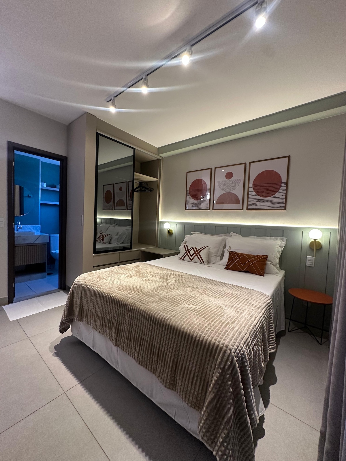 Viva a experiência de se hospedar com estilo, no moderno Ed. Hub Compact Life, no coração do Setor Bueno! Apartamento novo e sofisticado, 51m² de puro conforto, ar condicionado, varanda ampla com rede de proteção, cama Queen super confortável, sofá-cama premium. Wi-Fi rápida, SmartTV 50”, mesa de trabalho e lava/seca privativa. Relaxe no chuveiro incrível e aproveite a melhor região de Goiânia. Ideal para famílias, casais e viajantes que gostam de bom gosto. Reserve já e sinta-se em casa!!