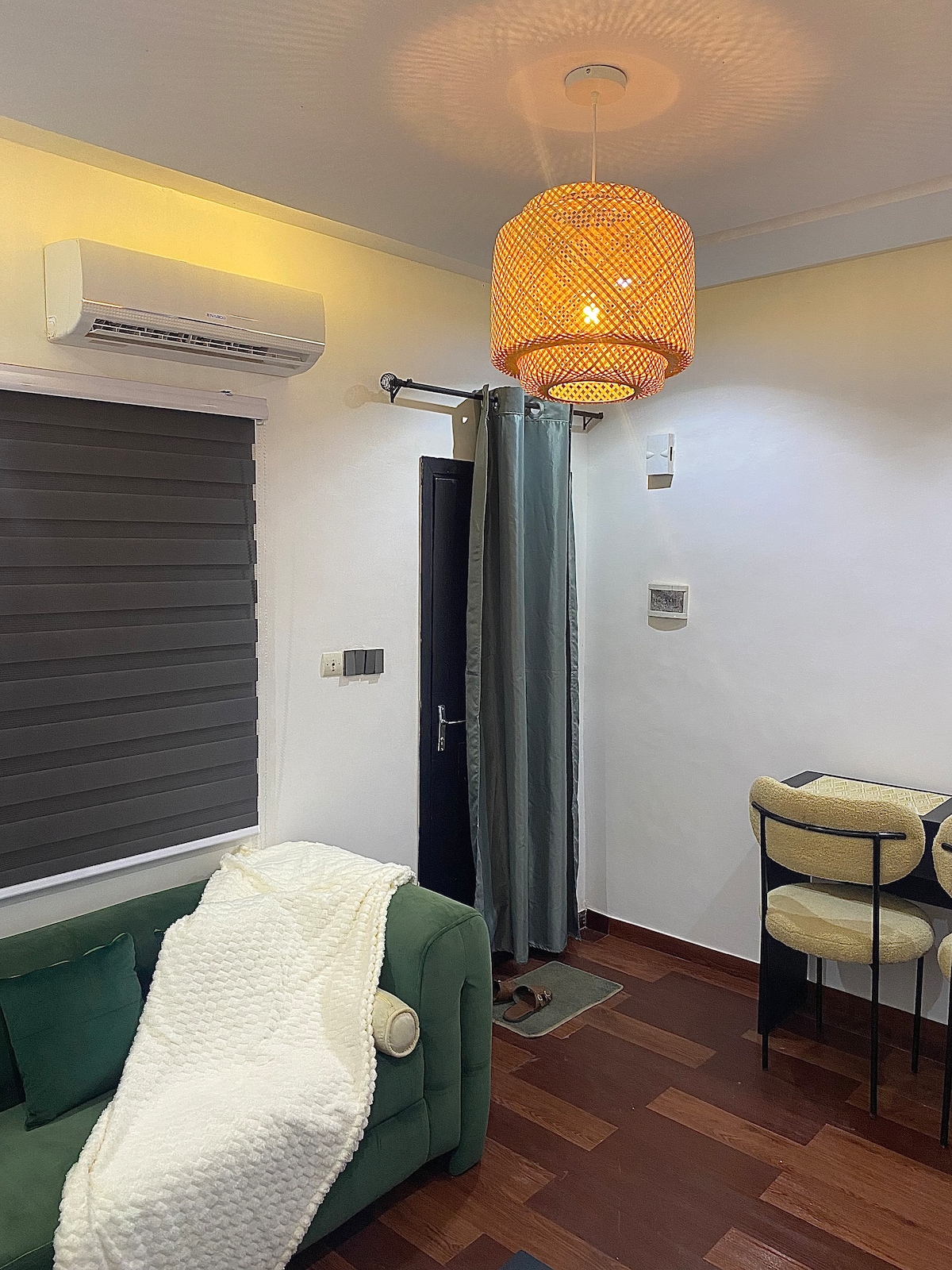 Découvrez ce superbe appartement deux pièces, parfait pour un séjour agréable et reposant avec la fibre optique installée (80 Mbps) & un lave-linge . Entièrement rénové avec une décoration moderne et soignée, il offre tout le confort nécessaire, à 30-45min de trajet de l’aéroport et de la plage selon la circulation et se situe à Maria-gleta dans l’arrondissement de Godomey . La salle de bain raffinée est équipée d’une cabine de douche et d’une vasque à l’italienne , de l’eau chaude .