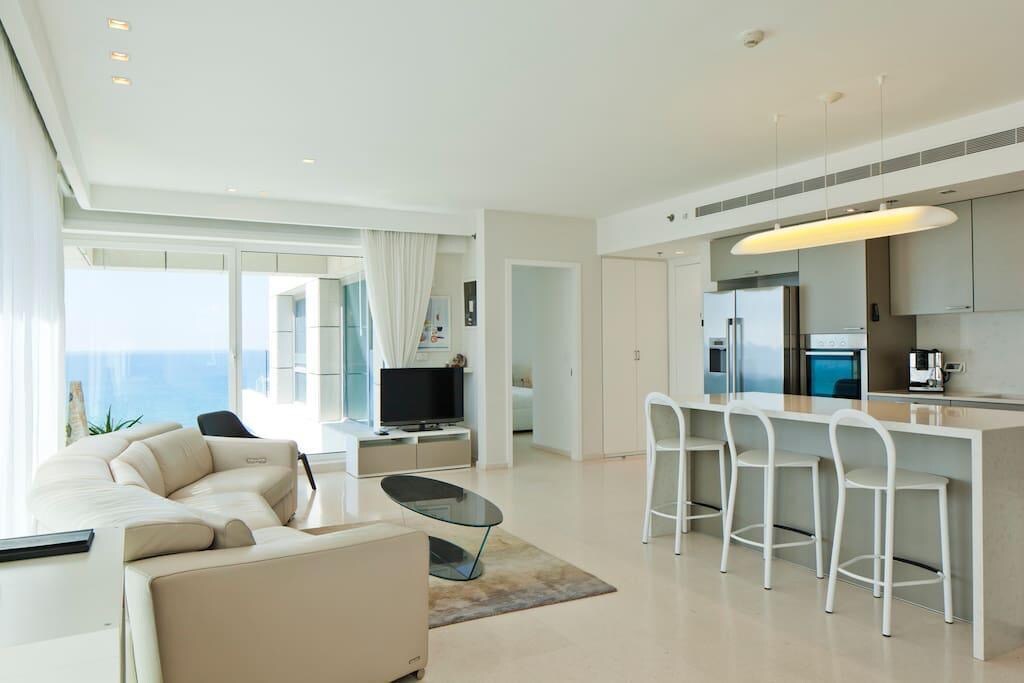 Banana Beach veya Carmel pazarından her 2 dakikada bir yürüyerek, market çantalarınızla/mayolarınızla eve döndüğünüzde, deniz manzaralı dairenize girer, ıslak eşyalarınızı balkona asar, açık havada güneş duşu veya içeride sıcak bir masaj duşu kullanır, ardından biraz şarap yudumlar, ayaklarınızı güvertede veya stüdyoda HD geniş ekranda en sevdiğiniz filmleri izlersiniz. Daire binanın arka tarafında, bu yüzden geceleri duyduğunuz en yüksek sesler çoğunlukla bu seviyedeki dalgalardır.