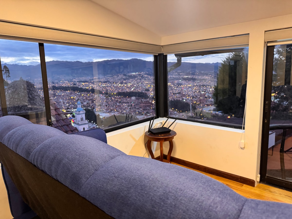 Mirador de Turi'deki bu rustik lüks kulübeden Cuenca'nın en iyi manzarasıyla uyanın. %100 ahşaptan yapılmış, pencereleriyle tüm şehri evinizden görmenizi sağlayan büyülü bir deneyim sunar. 6 kişilik kapasite, 2 yatak odası, 2 tam banyo, donanımlı mutfak. Özel bir otoparkı vardır ve yakınlarda birkaç halka açık otopark vardır. Her kuruşuna değecek benzersiz bir deneyim! Bugün rezervasyon yapın ve unutulmaz bir deneyim yaşayın.