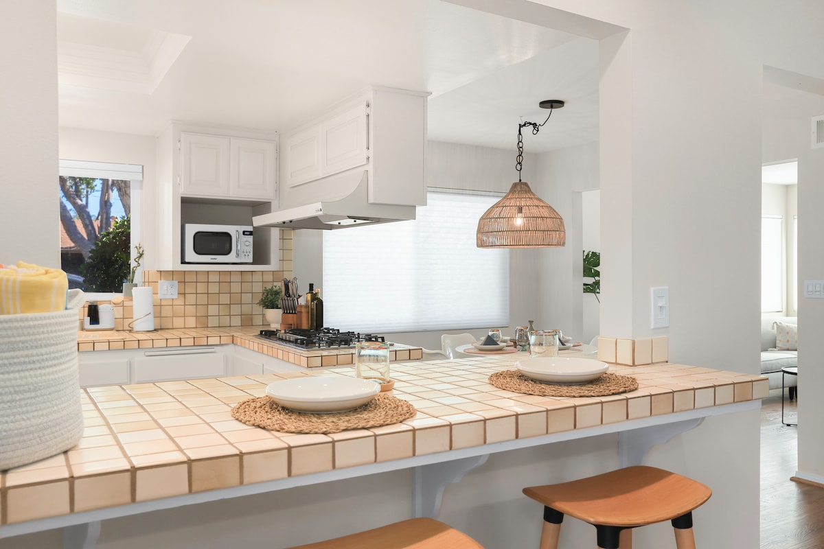 Tuzlu su havuzu, dağ ve bahçe manzarası ile özel bir yüzyıl ortası köşe evin tadını çıkaracağınız Villa Covina'da iç/dış mekan SoCal yaşam tarzını yaşayın. 3 yatak odası, 2 banyo ve 5 yatağınız olacak. Aileler veya gruplar için mükemmeldir. Yüzyıl ortası tarzı İskandinav iç mekânında rahatlayın ve üst düzey cihazlarla şefin mutfağında yemek pişirin. Los Angeles ve Orange County arasında merkezi bir konumda, Disneyland'e +/- 30 dakika, Universal'a 40 dakika, LAX'e 40 dakika ve ONT'ye 20 dakika mesafede olacaksınız.