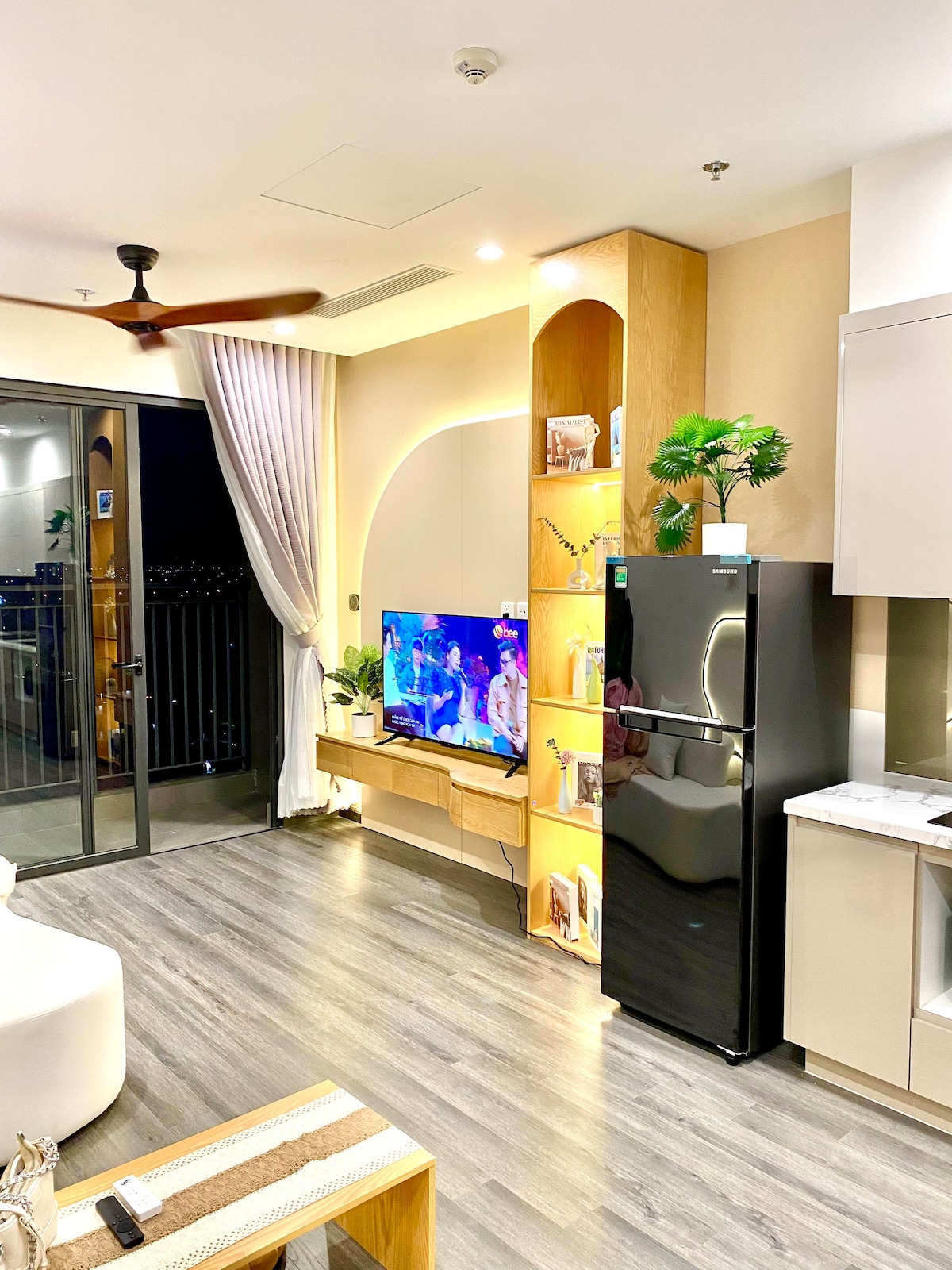 Welcome to the studio in the M2 Building at Vinhomes Ocean Park. The apartment is equipped with everything you need, from a cozy-soft bed & a fully-equipped kitchen to a sleek bathroom with modern fixtures Lưu ý quan trọng: Tất cả tiện ích chung của toà nhà (gym, BBQ, bể bơi…) không nằm trong giá phòng và được ban quản lý thu phí riêng. Chủ nhà không kiểm soát và không bao gồm chi phí các tiện ích này trong giá thuê. Việc đặt phòng đồng nghĩa với việc khách đã hiểu và đồng ý với điều kiện trên.
