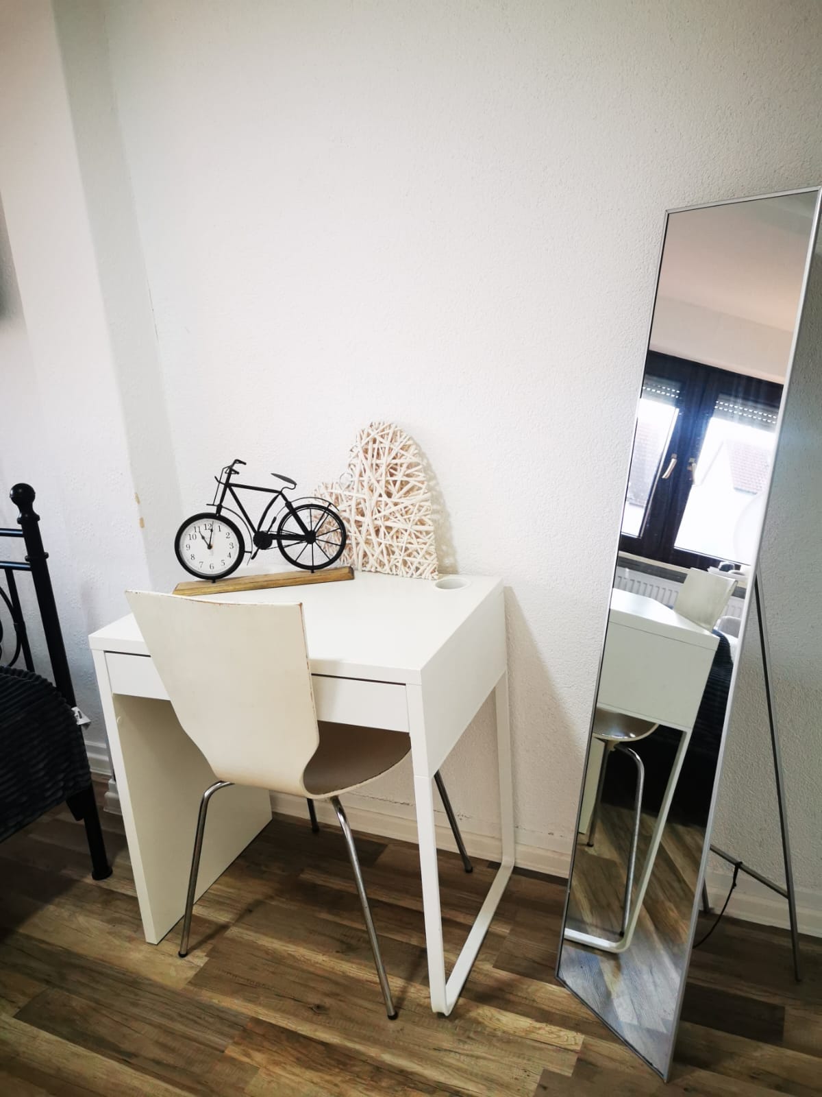 Direkt in Waiblingen mit Balkon und Blick ins Grüne. Die Wohnung befindet sich im wunderschönen Remstal in einer ruhigen Wohngegend direkt in Waiblingen. Vollmöbliert mit eigenem Bad, einer Küche und verfügt über einen Aufzug. Die gemeinschaftliche Schwimmhalle, Sauna und Fitnessraum dürfen mitbenutzt werden. Öffentliche Verkehrsmittel - 2min zu Fuß Waiblingen Zentrum - 5min zu Fuß Stuttgart Zentrum - 20min mit dem Auto Stuttgart Zentrum - 30min mit der Bahn