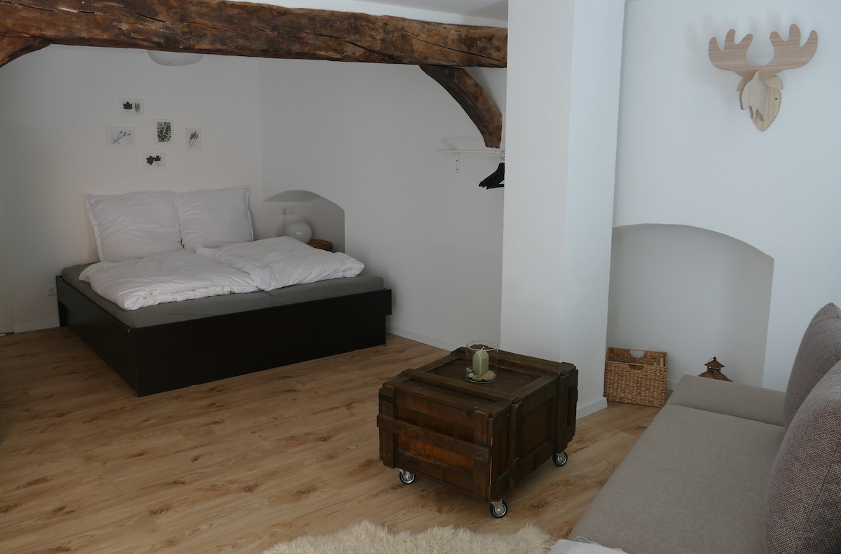 Biz sanatçı bir çiftiz ve iki sevimli Birmanya kedimizle Endingen'in tarihi kasabasında tarihi bir evde yaşıyoruz. İlkbahardan sonbaharın sonlarına kadar, pencereden eski bir kumtaşı çeşmenin su sıçramaları görülüyor. Üst zemin kattaki sade ve rustik daire banyo, küçük bir mutfak, ZH ve fayanslı bir ocak ile donatılmıştır. Mağazalar ve restoranlar çok yakındadır. Bitişikteki üzüm bağları ve Kaiserstuhl sizi yürüyüşe davet ediyor.