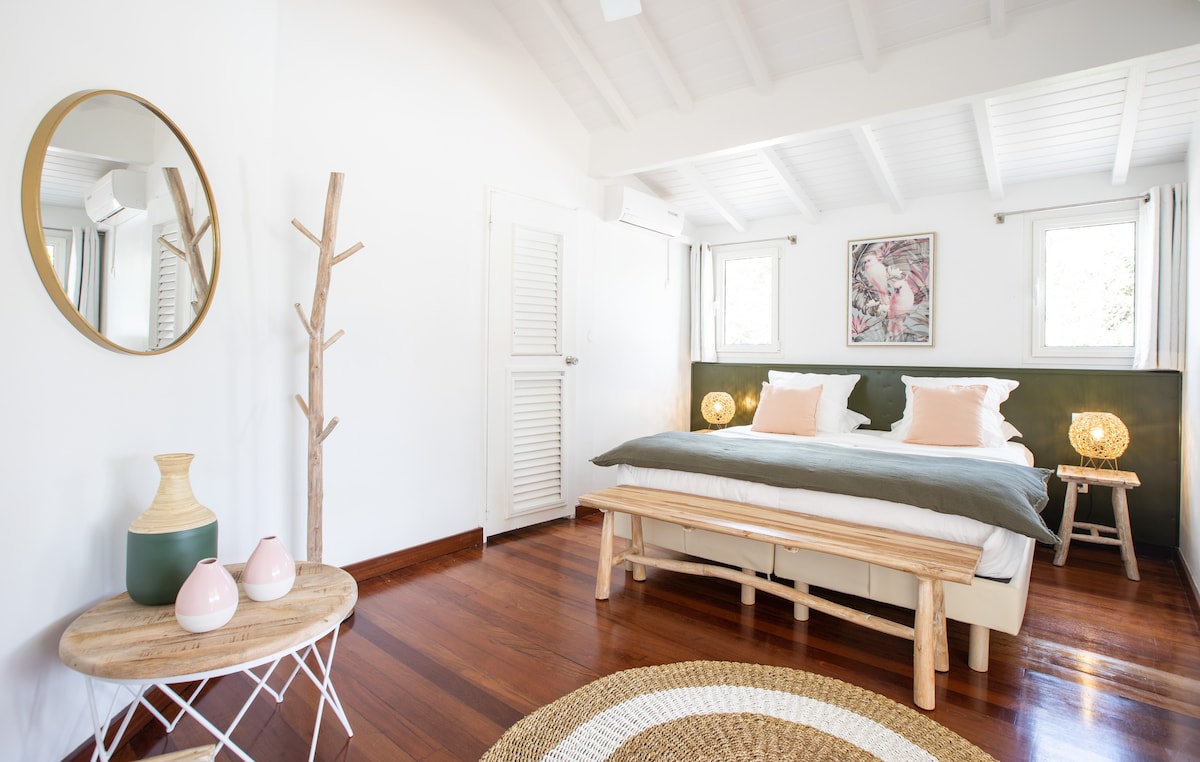 Bungalow Serenity, Terres Basses/Low Lands'ın güvenli konutunda bulunmaktadır. 58sf, 37msf teras, plaja 5 dakika mesafede, yemyeşil bitki örtüsüyle çevrili, göl manzarasıyla size huzur ve yumuşaklık getirecek. Tamamen klimalıdır, kral yataklı büyük bir yatak odası, tam donanımlı bir mutfak, akıllı TV ve kablosuz internet erişimi olan büyük bir oturma odası içerir. Banyoda depolama alanlı çift lavabo, büyük bir duş ve çamaşır makinesi vardır.