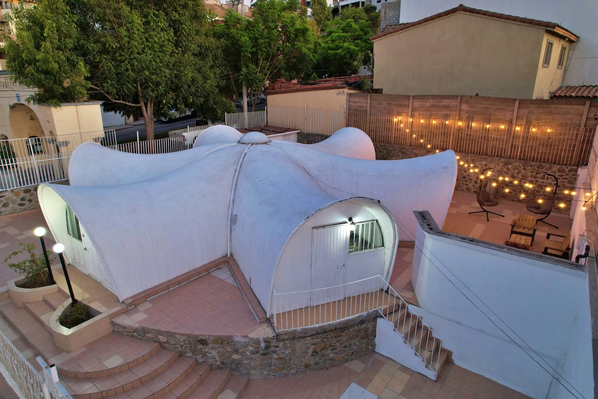 Meksika'nın en ünlü Şarap Ülkesinin (Valle De Guadalupe) göbeğinde yer alan Villa De La Rosa'daki Cúpulas'ta yer alan en yeni, benzersiz Glamping Deneyimimize hoş geldiniz. Gökyüzünün altında uyuyun ve en güzel yıldız izleme gecelerinin ve unutulmaz gün batımlarının ve gün doğumlarının tadını çıkarın, güne lavanta, biberiye çalılarımızın ve güzel Nebbiolo Asmalarımızın harika kokusuyla başlayın. Burası dinlenmek ve Valle De Guadalupe'nin doğasıyla bağlantı kurmak için mükemmel bir yer.