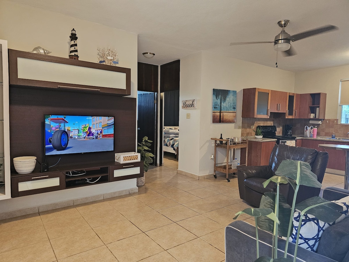 Şimdi güneş enerjili jeneratör ve güneş enerjili su ısıtıcısı ile! (19/09/2021) Rahat bir 1 yatak odası, 1 banyo, 1 mutfak ve 1 oturma odası dairesi. Oturma odasında bir Japon şiltesi mevcuttur. Rahatlatıcı bir deniz tarzı ortamın keyfini çıkarın. Plaja yürüyerek sadece 1 dakika yürüme mesafesinde, sessiz ve samimi bir Cul - de - Sac caddesi üzerinde yer almaktadır. Jobos Plajı sadece kısa bir sürüş mesafesindedir. Bölgedeki en tanınmış restoranlardan bazıları da arabayla çok yakın mesafededir.