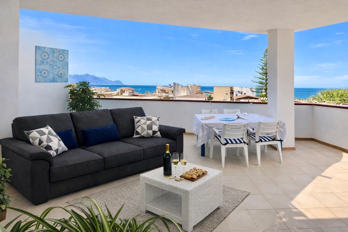 Mondello Körfezi'nin merkezinde, Capo Gallo ve Monte Pellegrino doğal rezervleri arasında, deniz kenarında, asansörlü 3. katta özel teraslı daire. Evin hemen altında plaj, eczane, fırın, bankalar, barlar, restoranlar, pizzacılar. Evin hemen arkasında bulunan otobüs durakları ve taksi servisi ile Palermo'ya 15 dakikada ulaşabilirsiniz. Mondello köyünün meydanına yürüyerek ya da ücretsiz servis ile ulaşabilirsiniz.