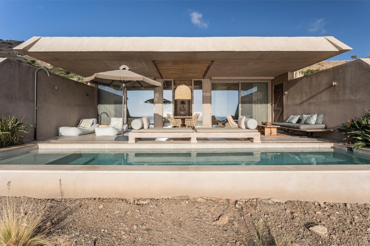 Deniz manzaralı ve özel havuzlu iki yatak odalı villa