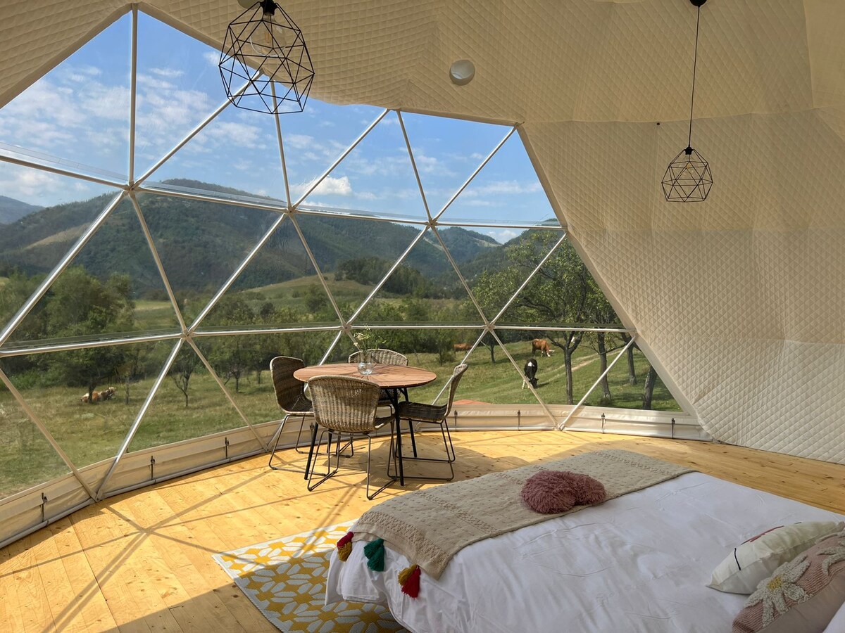 Welcome to our enchanting GeoDomes by Manta's Retreat, nestled amidst the breathtaking beauty of the Cerna Mountains. Embark on invigorating hikes through pristine landscapes, where each step unveils the wonders of untamed nature. Breathe in the crisp mountain air, and feel the stress of the everyday world melt away. Escape the ordinary and immerse yourself in the extraordinary at our Geodesic Domes by Manta's Retreat. Your adventure awaits!