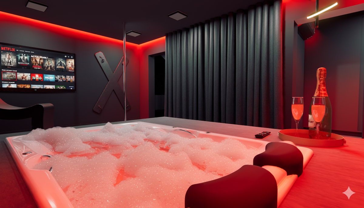 ❤️🔥 1001 Sombras de Amor'u keşfedin — Jakuzi Deneyimi, Tabuleiro semtinde şehvetli bir kaçış noktası – Camboriú (SC), Balneário Camboriú'ya sadece birkaç dakika mesafede. 💎 💎Özel jakuzi, kırılmaz king-size yatak, tavan aynası, striptiz barı, St. Andrew haçı ve ortam aydınlatması, zevki serbest bırakmak ve sınırsız arzuyu deneyimlemek için mükemmel bir ortam sağlar. 🎬 Netflix, Prime Video, Disney+, Spotify ile 92 inç yataklı sinema. 💋 Burada lüks tutkuyla buluşuyor ve hayal gücü sınırsız.