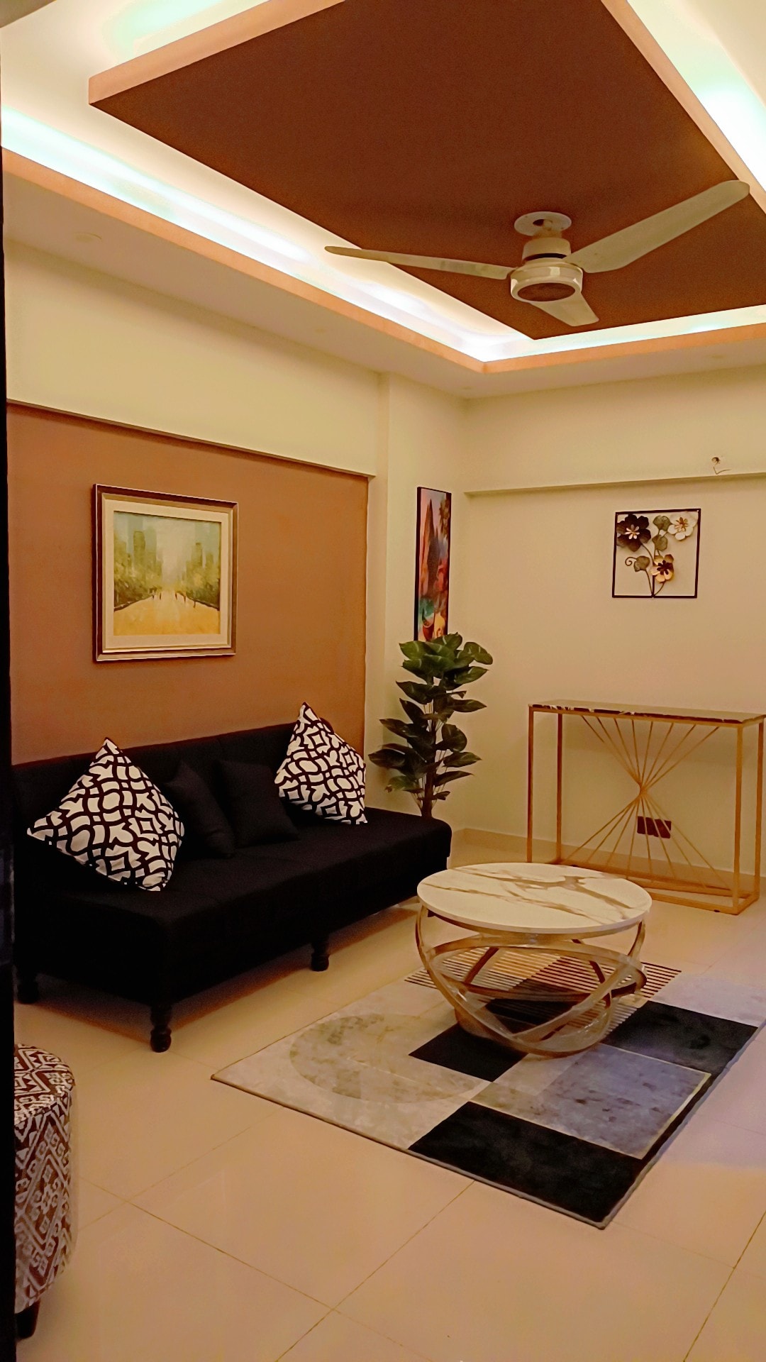 Premium 2BR Family Apartment ✓ Prime location near airport & Jinnah Ave Food Street ✓ 2 bedrooms w/ attached baths + spacious living area ✓ Fully equipped kitchen & cleaning supplies provided ✓ 24/7 electricity (generator backup) & water supply ✓ Strictly for families - no parties/loud music ✓ No smoking/drugs allowed ✓ Drivable to Malir Cantt & Falcon Society ✓ Thoughtfully furnished for comfortable stays Book your safe, convenient family getaway today!" CNIC/Passport mandatory for check-in.