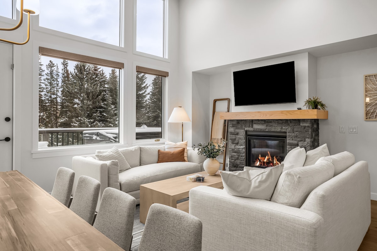 Escape to mountain luxury in this beautifully appointed 4 bed 3.5 bath townhouse villa. Designed with comfort and elegance in mind, this home features furnishings by Restoration Hardware throughout, creating a sophisticated yet cozy retreat. Wake up to breathtaking mountain views from nearly every room. After a day of exploring, unwind in the private hot tub or relax on the spacious patio couch, perfect for stargazing or sipping wine by sunset.