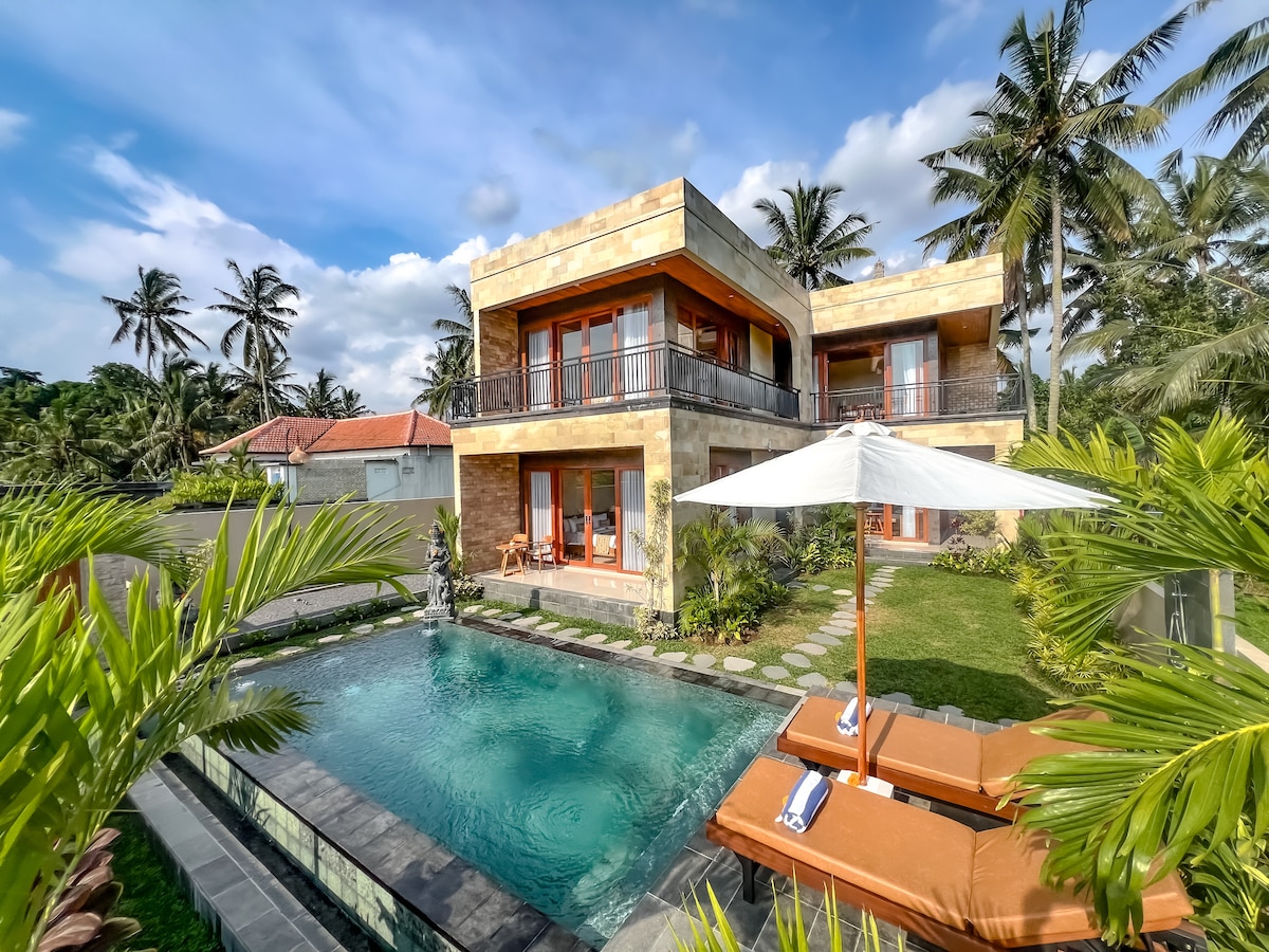 Muhteşem Deluxe odamız, ikinci katta kırsal manzaralı. Bu modern lüks tarzı çift kişilik yatak odası, müthiş ortak havuzu vardır. Mekân, Ubud merkezine sadece 3,5 km uzaklıktaki turistik Kelabangmoding köyünde bulunmaktadır. Bali'nin kırsalındaki Ubud Köyü'nde konukseverliğimizin tadını çıkarın. Bu şık yerde tüm ailenizle hoşça vakit geçirin. Bu sakin, şık mekânda arkanıza yaslanın ve rahatlayın. Ailemiz olalım ve Bali yaşamını deneyimleyelim. Ekibimiz size hizmet vermekten mutluluk duyacaktır. Görüşmek üzere.