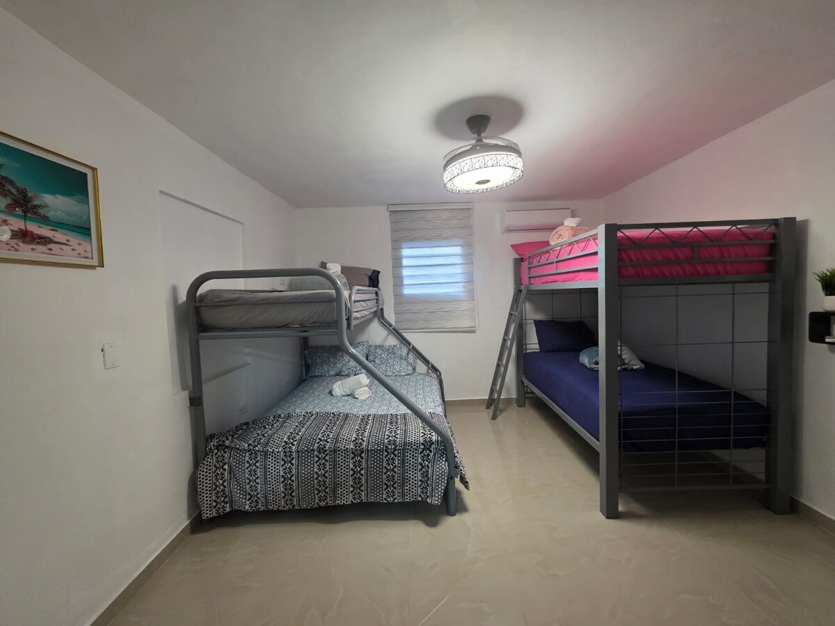 Sevdiklerinizle birlikte konaklayabileceğiniz bir yer olan konaklama yerimize hoş geldiniz. Ev, klima ve tavan vantilatörleri olan 3 yatak odası ve iki tam banyodan oluşmaktadır. 6 kişiyi ağırlamaya hazır konaklama. 24 saat elektrik. Giriş kaydı saati 15.00 Çıkış saati 11.00 UASD Üniversitesi'ne 4 dakika yürüme mesafesindedir. El Quemaito Plajı 15 Dakika Rio y Playa San Rafael 30 dakika Los Patos Nehri ve Plajı 50 dakika uzaklıkta.