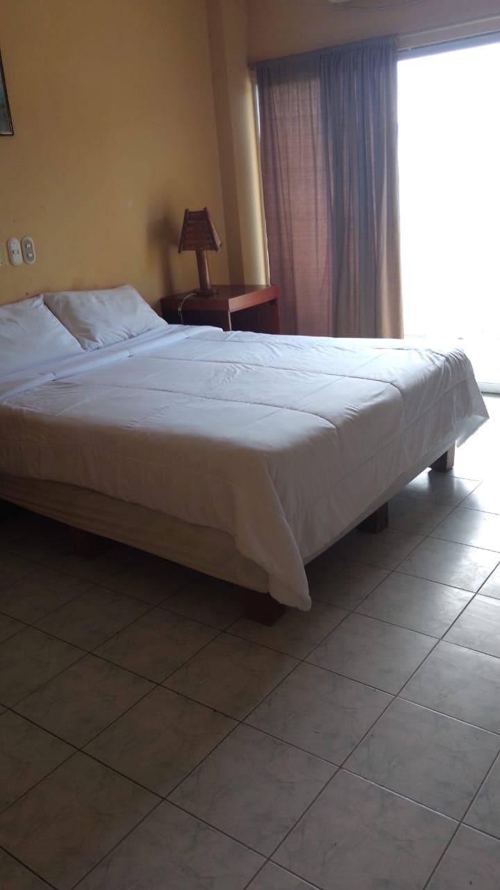 Este encantador y exclusivo lugar para quedarte cuenta con una habitación vista al mar y edificios cercanos a la zona , estamos ubicados en la mejor zona de Manta lugar tranquilo y seguro cerca de restaurantes , entretenimiento nocturno y familiar , área de juego de bolos , playas y con salida rápida a la ruta del sol Servicios incluidos - Desayuno - Directv - Netflix - Agua caliente - Aire acondicionado - Servicio de Garaje gratuito - Uso de áreas comunales - Piscinas
