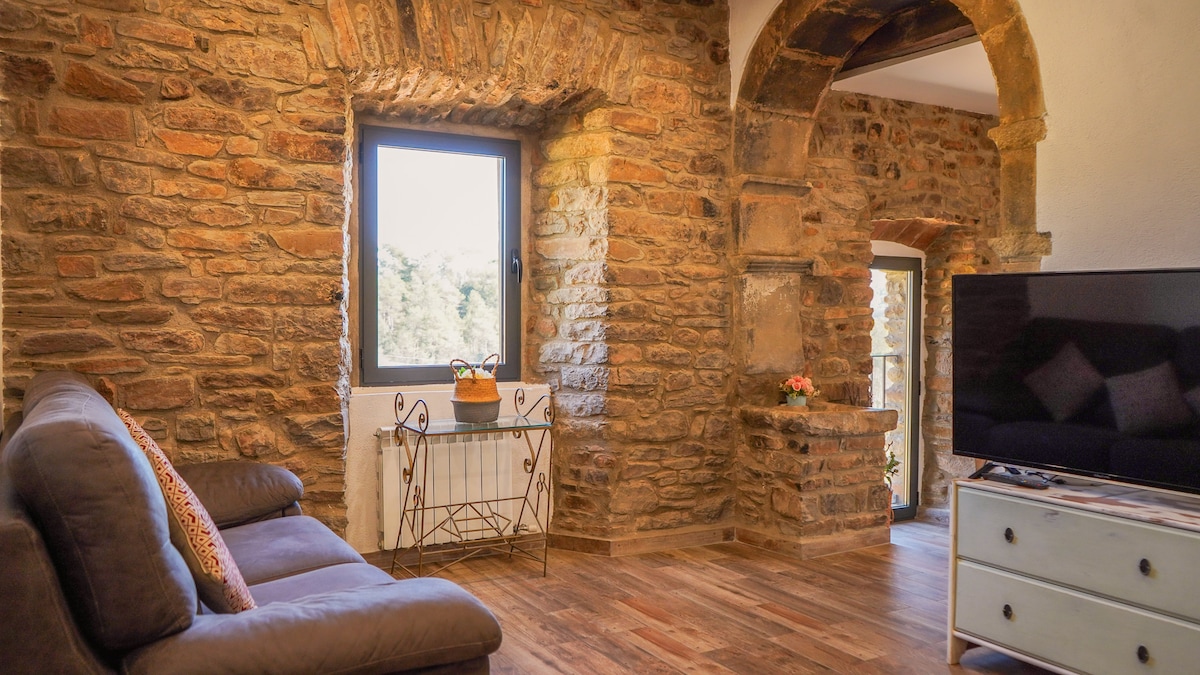Alójate en un acogedor apartamento totalmente reformado en una antigua masía catalana con más de cinco siglos de historia, dentro de la finca de La Torre del Vilar, a solo 10 minutos de Vic. Es privado e independiente, aunque se ubica en una masía compartida con otros dos apartamentos. Dispone de cocina equipada, sala de estar y baño privado. Entorno rural, rodeado de naturaleza, ideal para descansar y desconectar.