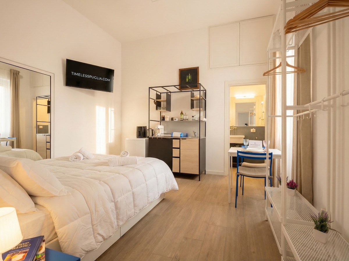 Modern iki odalı daire, çok aydınlık ve her türlü konforla donatılmıştır (her odada klima, kablosuz internet bağlantısı, 2 akıllı TV, çamaşır makinesi, kurutucu, mutfak vb.). Tren istasyonu, gezinti yolu, merkez ve eski kasaba sadece birkaç dakika yürüme mesafesinde olduğu için kesinlikle stratejik konum öne çıkıyor. Daire, tavan penceresi ve Apulia'nın başkentinin en merkezi caddelerinden birine bakan balkon sayesinde çok aydınlık.