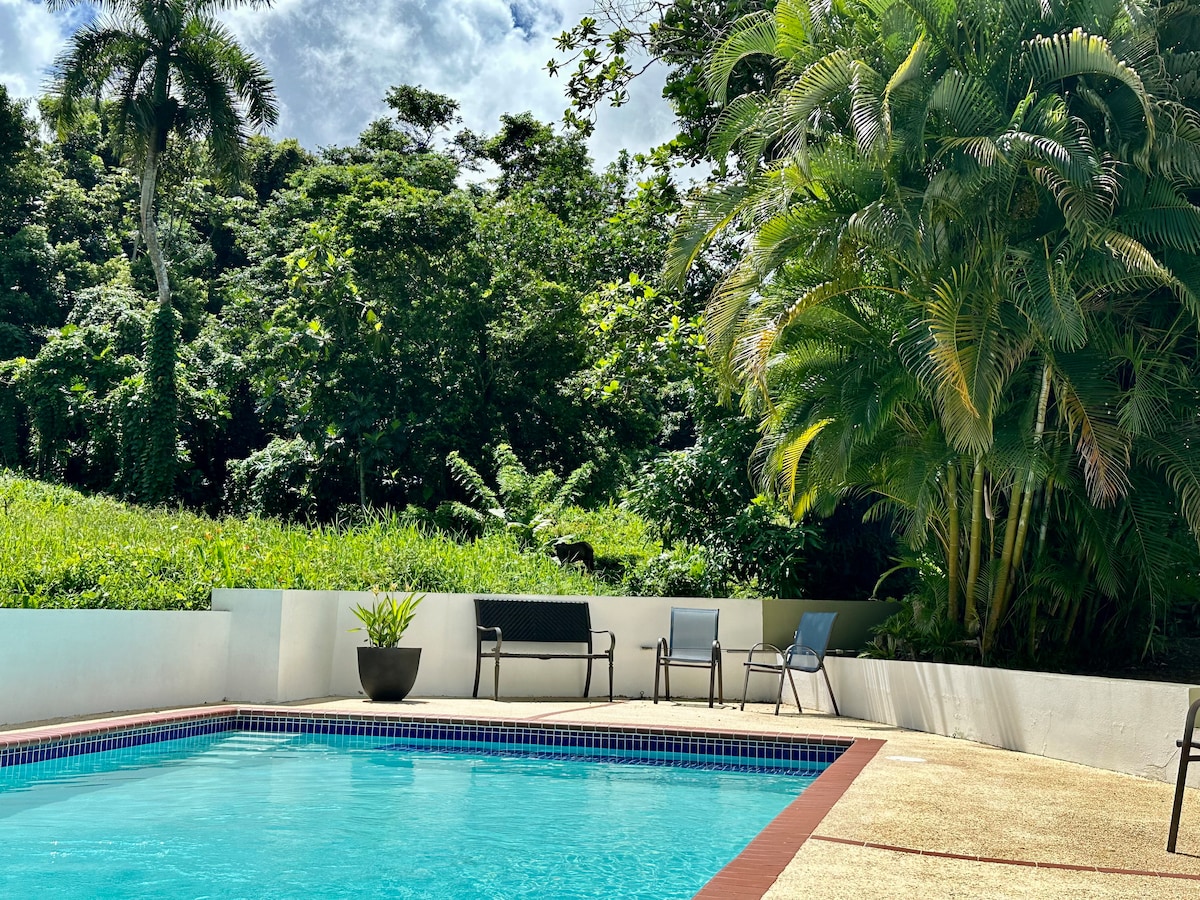 Büyüleyici "El Yunque Retreat"imiz, doğa tutkunları ve huzur arayanlar için gerçek bir cennet olan yemyeşil ve canlı El Yunque Ulusal Yağmur Ormanı'nda yer almaktadır. İki geniş terasımızdan nefes kesen dağ manzarasının ve muhteşem gün batımının tadını çıkarırken arkadaşlarınızla ve ailenizle dinlendirici bir zaman geçirin.