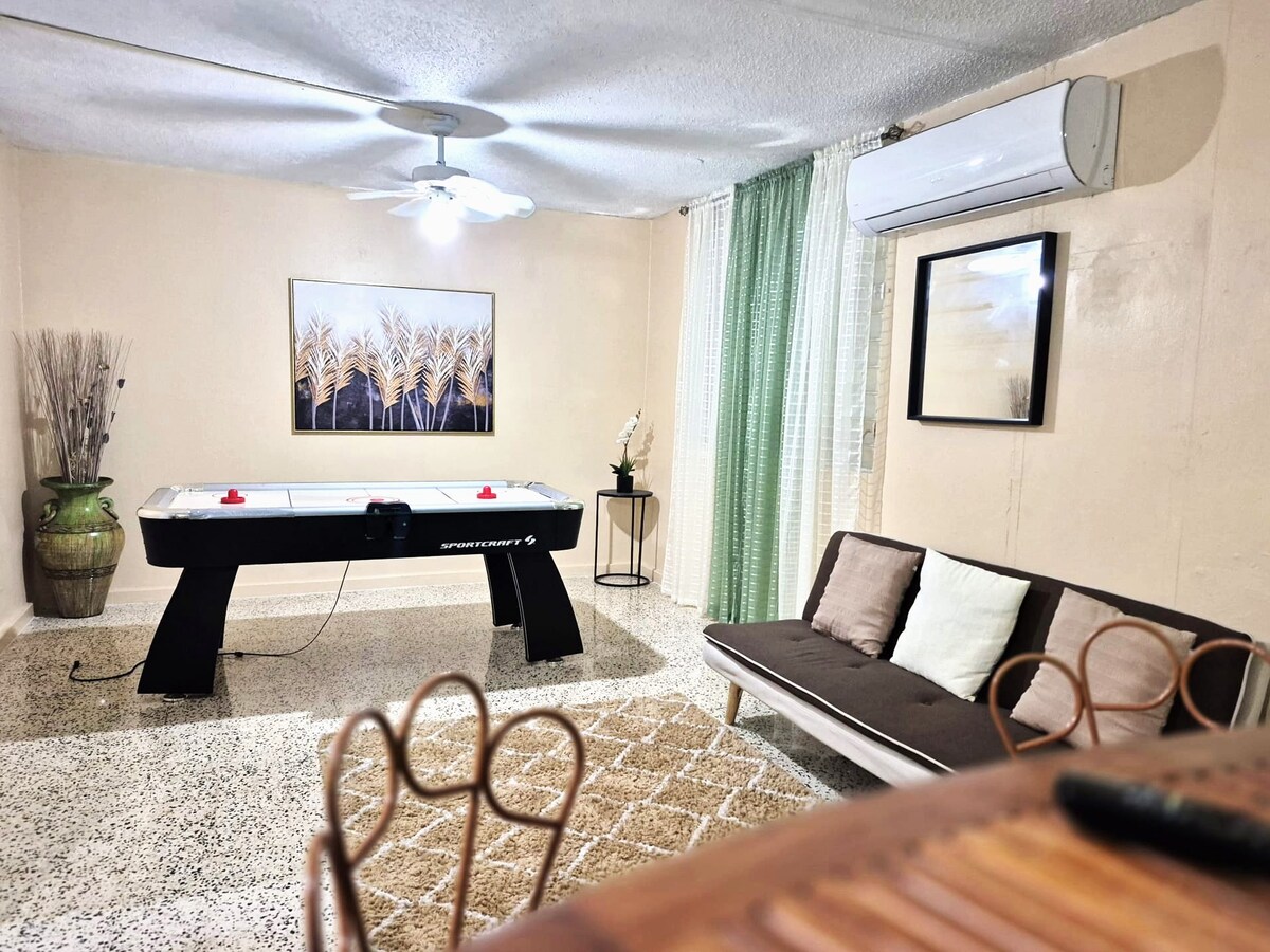 Bu şık yerde tüm ailenizle hoşça vakit geçirin. Burası uzaktan çalışan profesyoneller için mükemmel bir yer. Evimizde 8 kişinin rahatça sığabileceği 4 konforlu yatak odası ve 2 banyo vardır. Tam donanımlı bir mutfak, çamaşır ve kurutma makinesi kombinasyonu ve klima ve hızlı kablosuz internet bağlantısı olan özel bir çalışma alanı bulacaksınız. Toa Baja'daki Parque San Miguel'in kapalı ve korunan topluluğunun içindeyiz. Merkezi bir konumdayız ve SJU Havalimanı, Dorado, Old San Juan, Centro Medico ve Guaynabo'ya 30 dakika mesafedeyiz.