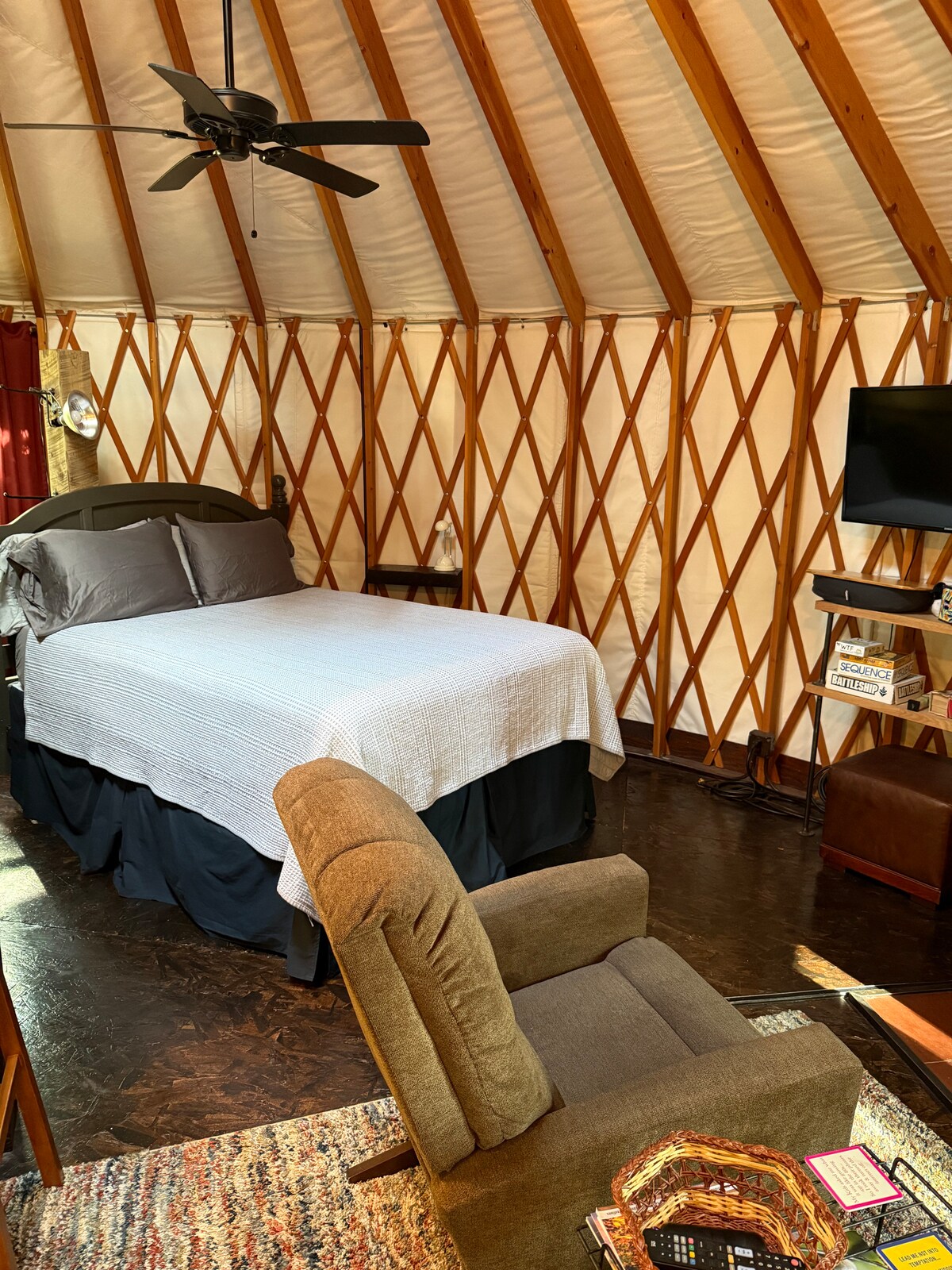 Perry Pines Yurt, Perry Gölü'nde, Cable'dan 2 milden daha az uzaklıkta, 4 mevsimlik bir yurt. CAMBA dağ bisikleti parkurlarına (North End Trailhead'e 4 mil), Birkie Start Area'ya (5 mil) ve bir ATV rotasına hızlı erişim ile, açık hava etkinlikleriniz için harika bir kamp alanına sahiptir. Yazın verandada oturup dalıcıkların sesini dinleyin veya kışın odun sobasının yanında ya da varil saunada ısının. Tam donanımlı mutfağın, duşlu banyonun, göl manzarasının ve eğlenceli, küçük, benzersiz bir kulübe seçeneğinin tadını çıkarın!