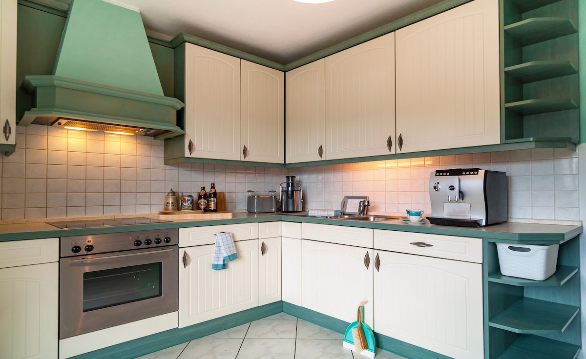 Kırsalın muhteşem manzarasına sahip bu sessiz ve şık döşenmiş dairede tüm ailenizle dinlendirici bir molanın tadını çıkarın. Geniş 4 odalı daire, kalbinizin arzuladığı her şeyi sunuyor: Tam donanımlı, modern bir mutfak sizi birlikte yemek pişirmeye davet ediyor. İki güneşli, mobilyalı balkon, dinlenip oyalanmak için ideal inzivalar sunar. Eğlence için oturma odasında ve ilk yatak odasında Netflix bulunan akıllı TV'ler mevcuttur. Ayrı tuvalet.