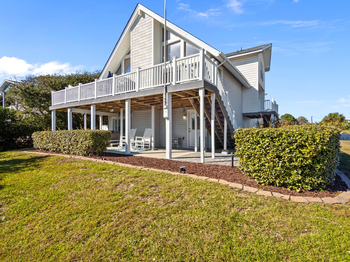 Kalabalık olmayan bir plajın ve sörfteki yunusların panoramik manzarasına sahip okyanusun üzerinde oturun. Tam stoklu mutfağımızın, granit üstlü yeni banyo dolaplarının, rahat yatakların ve sıcak bir evin tadını çıkarın. EI yüzmek, bisiklet sürmek, tekne gezmek, balık tutmak veya sadece dinlenmek için harikadır. Dubleks evin doğu tarafı. Evimizi rezerve etmek için en az 25 yaşında olmalısınız.