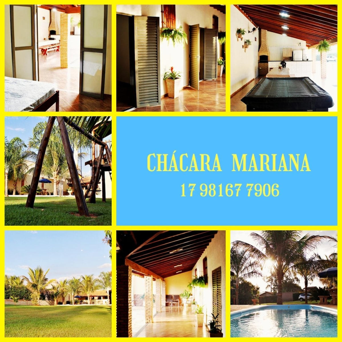 16 kişilik mevsimlik 🏡 ev, dinlenme alanı ve ısıtmalı havuz💦. Geniş 1.600 m², yeni inşa edilmiş, modern ve sofistike, aileler için uygundur. Biz Recanto Quinta das Palmeiras'ız. Espaço de Lazer şunları içerir: - 3 süit 🛏️ - Isıtmalı havuz ♨️ - Barbekü 🍖 - Ocak (set üstü ve odun yakma) 🍳 - Buzdolabı🧊 - Cervejeira 🍻 - Su pınarı 💧 - Akıllı TV 75 📺 - Kablosuz internet bağlantısı 📶 - 5 banyo. 🚿 - 6 araçlık garaj. Konum: Su parklarına, pazarlara ve restoranlara yakın.