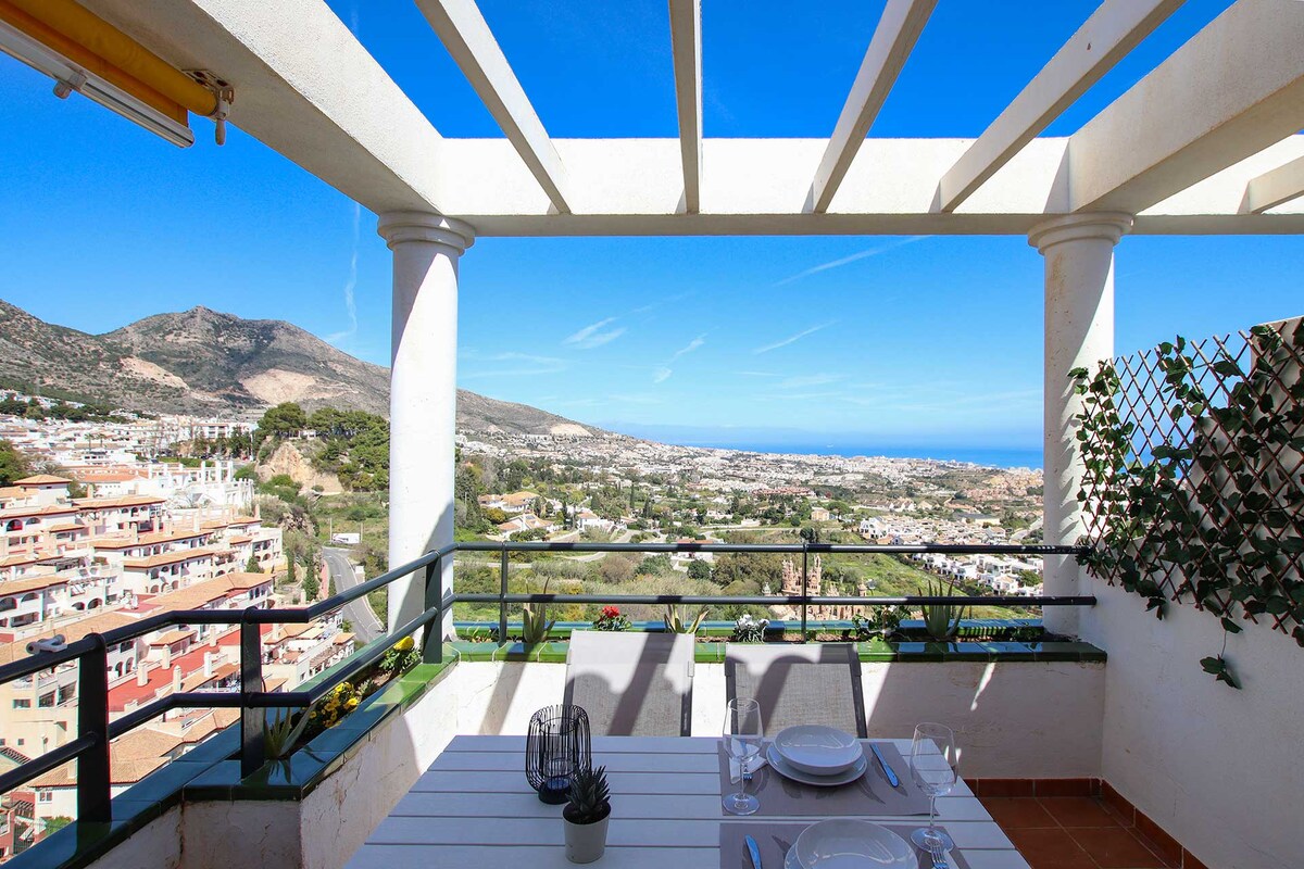 ☆ Hoş Geldiniz ☆ Bienvenidos ☆ Bienvenue ☆ Willkommen Maksimum 4 kişi kapasiteli ☆ أهلاً و سهلاً ☆ özel çatı katı, yüzme havuzu, deniz ve dağ manzarası, yüksek hızlı kablosuz internet bağlantısı (Fiber), Málaga havaalanına 15 dakika, ücretsiz otopark ve daha fazlası !