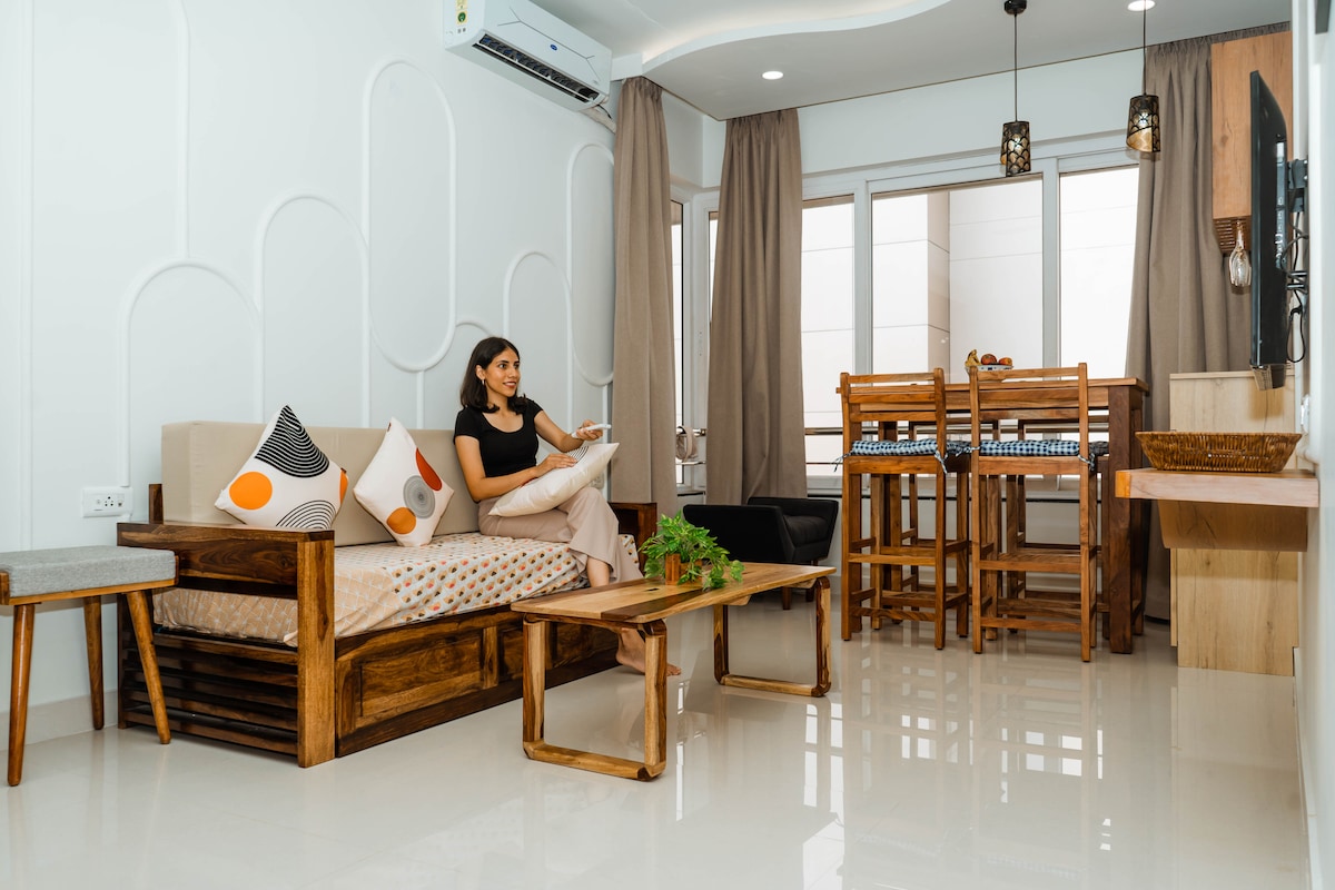 2BHK Havuz manzarası | Havaalanına 5 dakika | Zennova Stays