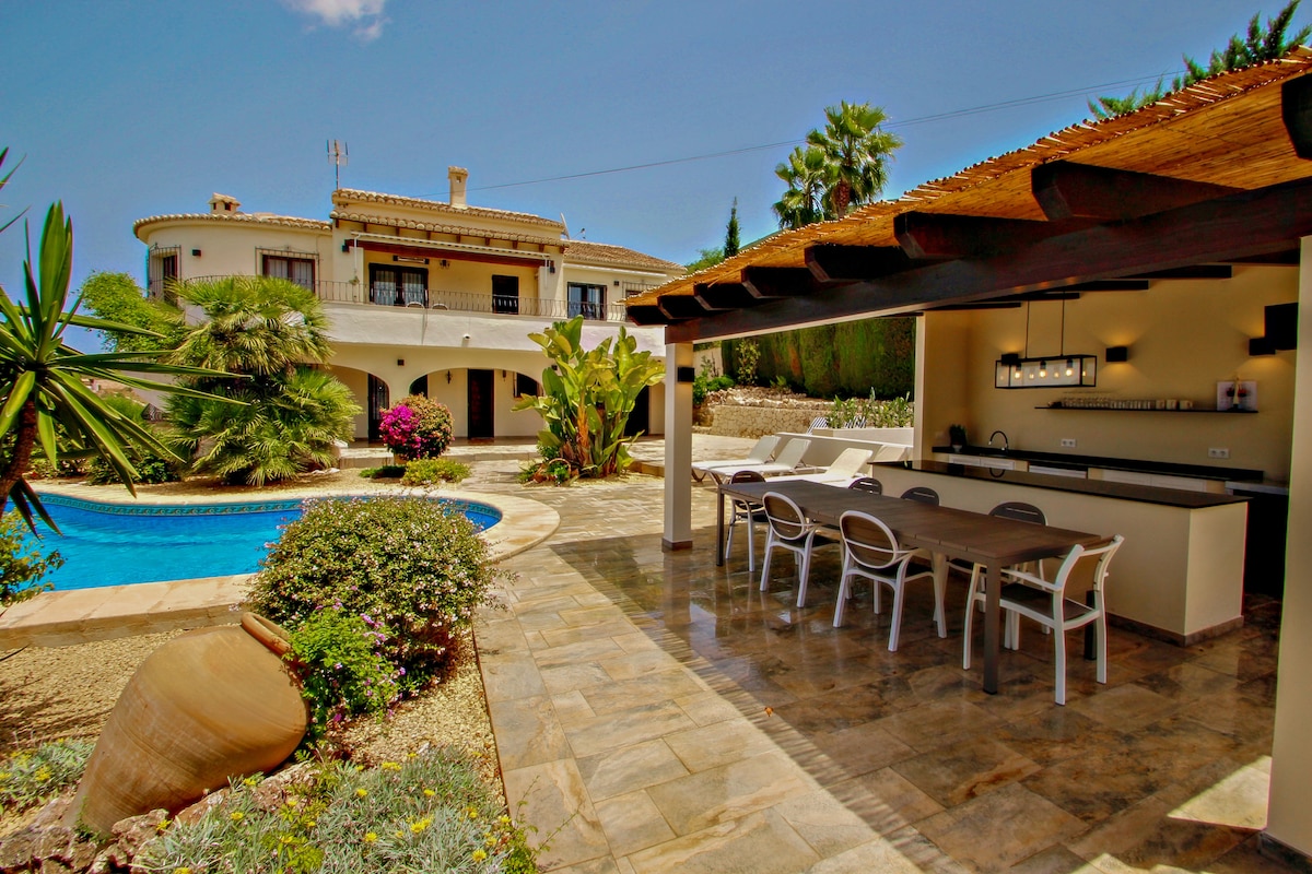 "Villa Sunset Moraira" - Enjoy dreamy days in a modernized Spanish-style villa for up to 8 guests. Highlights: - private pool (with heating) - large outdoor area with south-facing views - Outdoor kitchen with barbecue - air conditioning, fans and heating in all rooms - high-quality furnishings - 3 bedrooms with box-spring beds - 2 modern bathrooms with shower and bathtub - fully equipped kitchen - fast Wi-Fi - Smart TV - quiet location, close to the beach ☆ "Clio's villa is an absolute Jewel!"